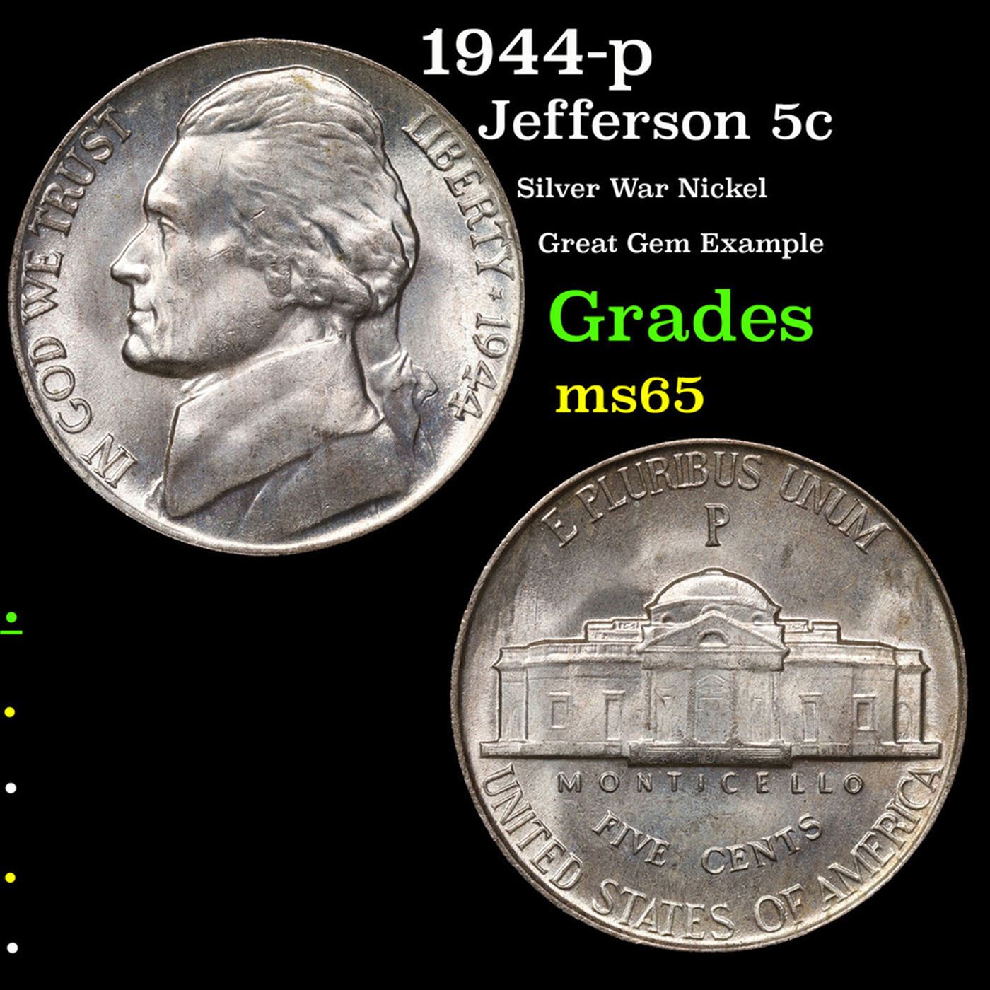 1944-p Jefferson Nickel 5c Grades GEM Unc.