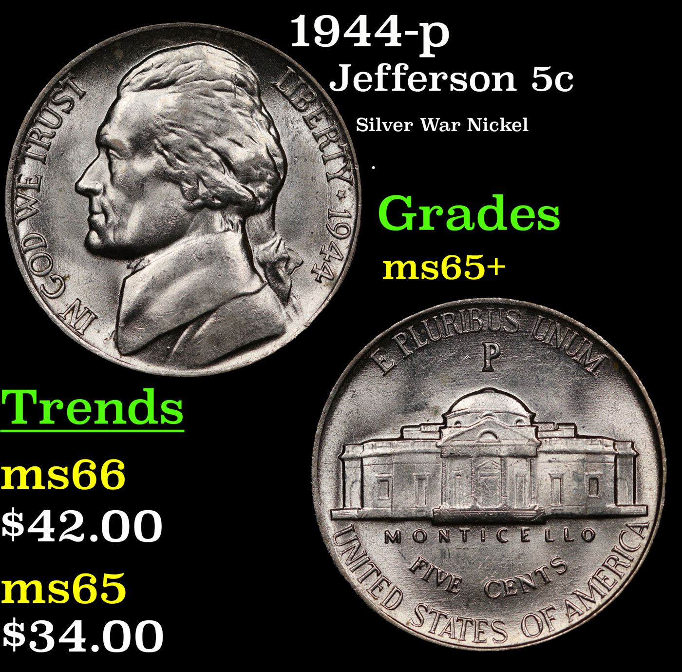 1944-p Jefferson Nickel 5c Grades GEM+ Unc.