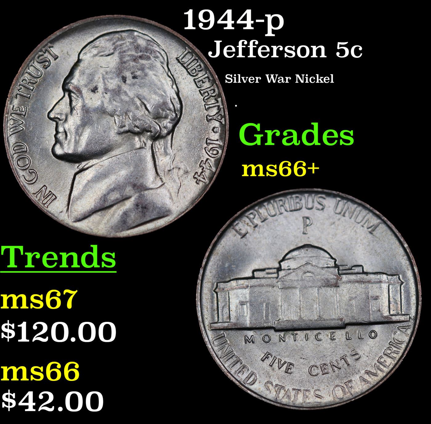 1944-p Jefferson Nickel 5c Grades GEM++ Unc.