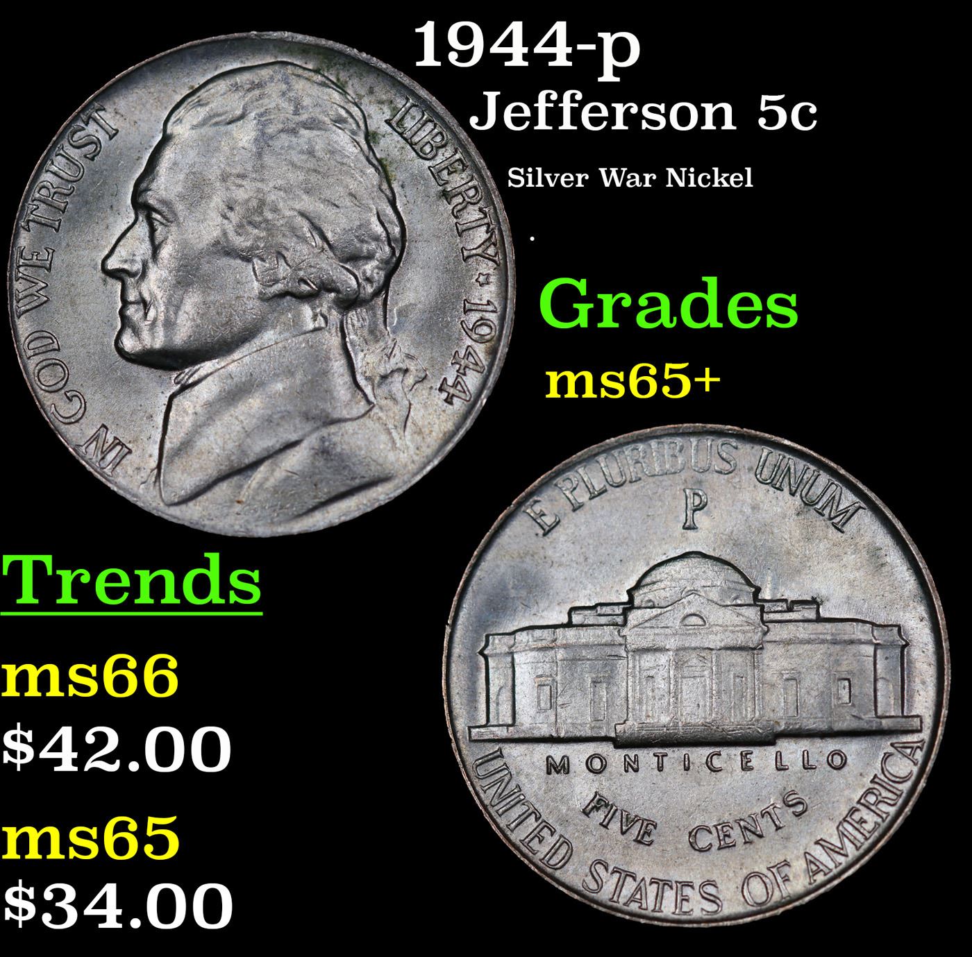 1944-p Jefferson Nickel 5c Grades GEM+ Unc.