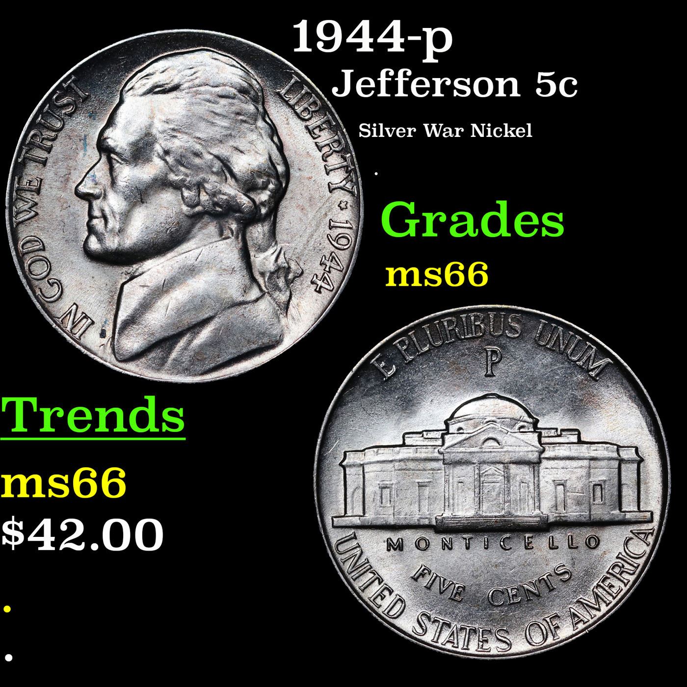 1944-p Jefferson Nickel 5c Grades GEM+ Unc.