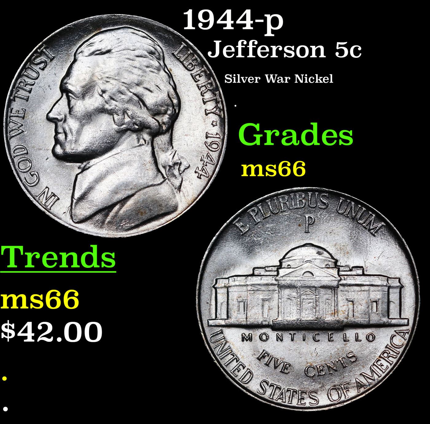 1944-p Jefferson Nickel 5c Grades GEM+ Unc.