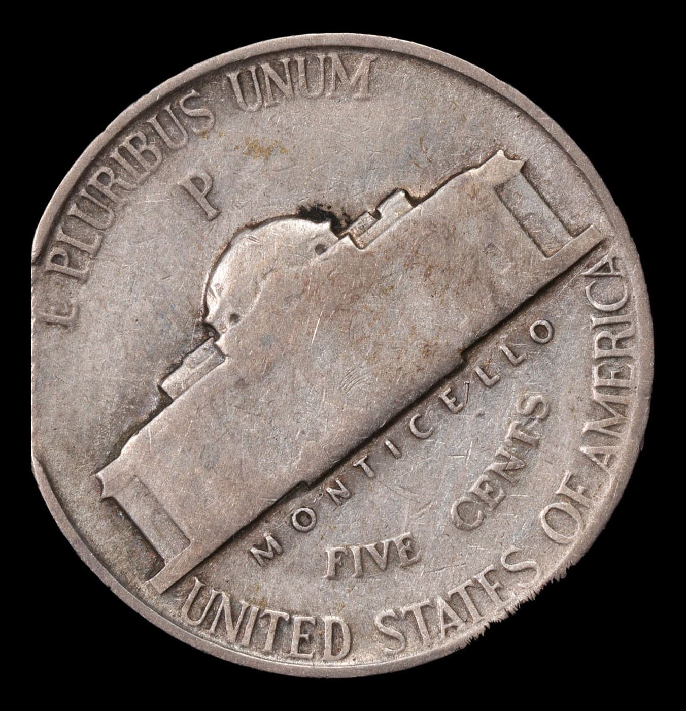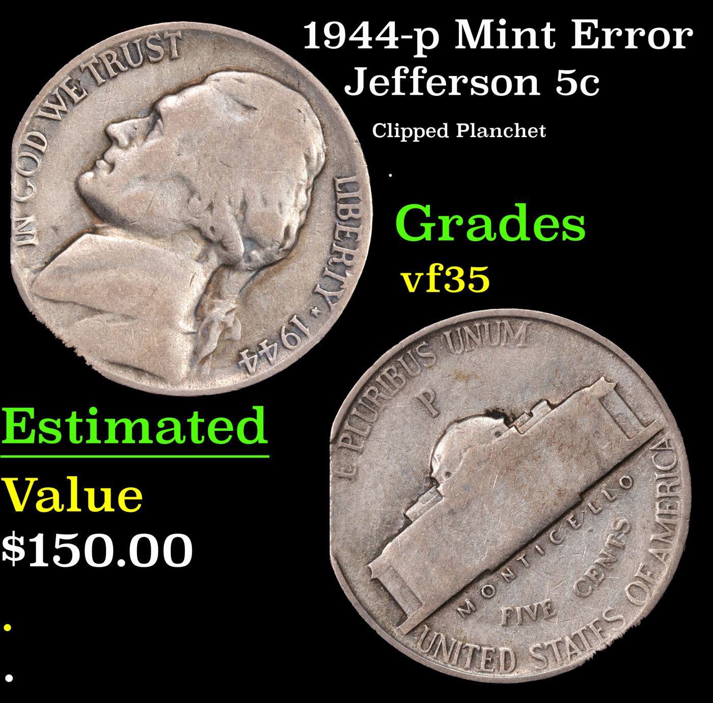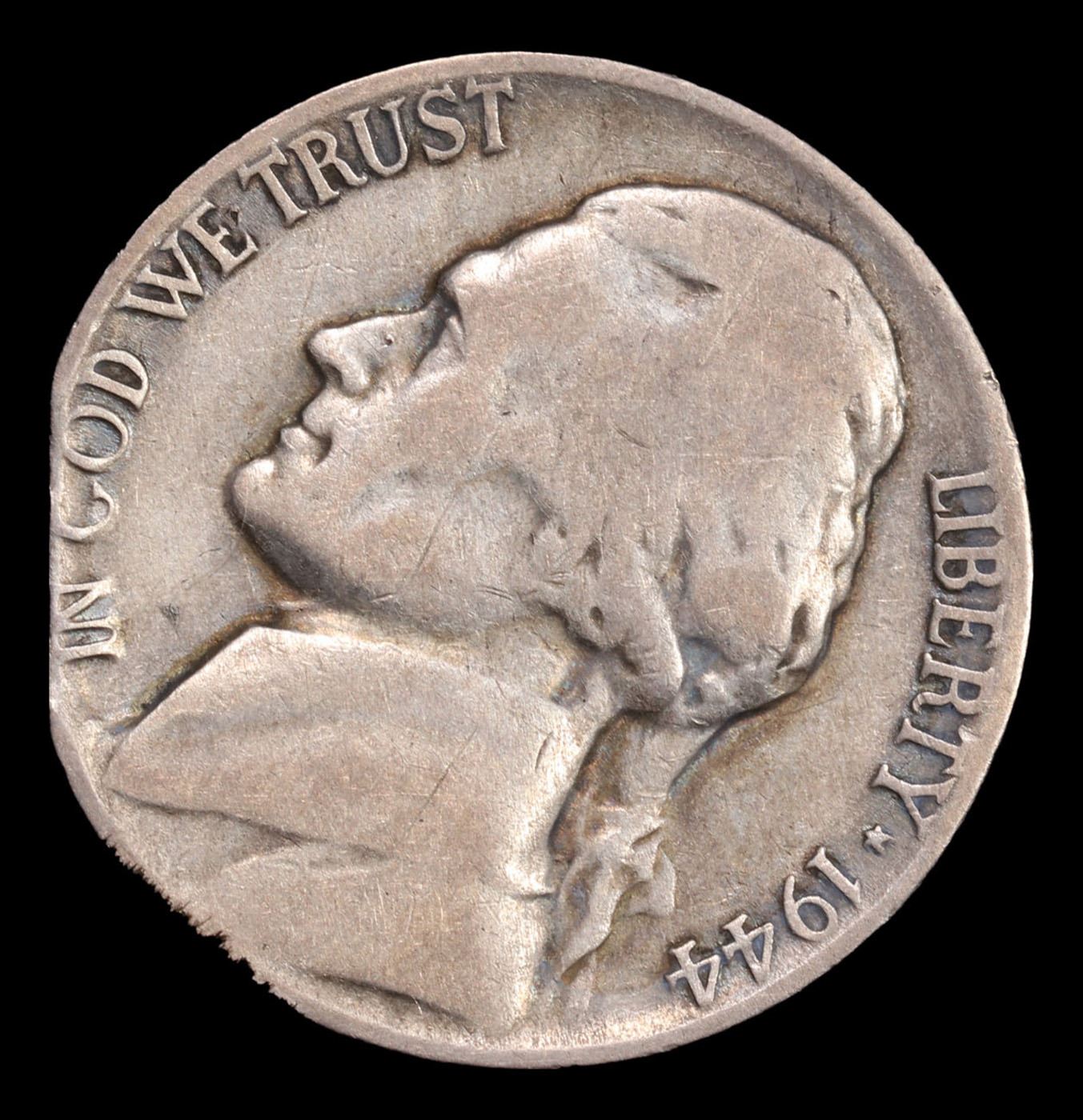 1944-p Mint Error Jefferson Nickel 5c Grades vf++.