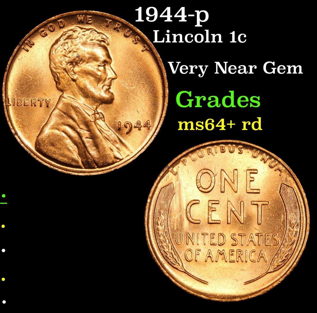 1944-p . Very Near Gem Lincoln Cent 1c Grades Choice+ Unc RD.