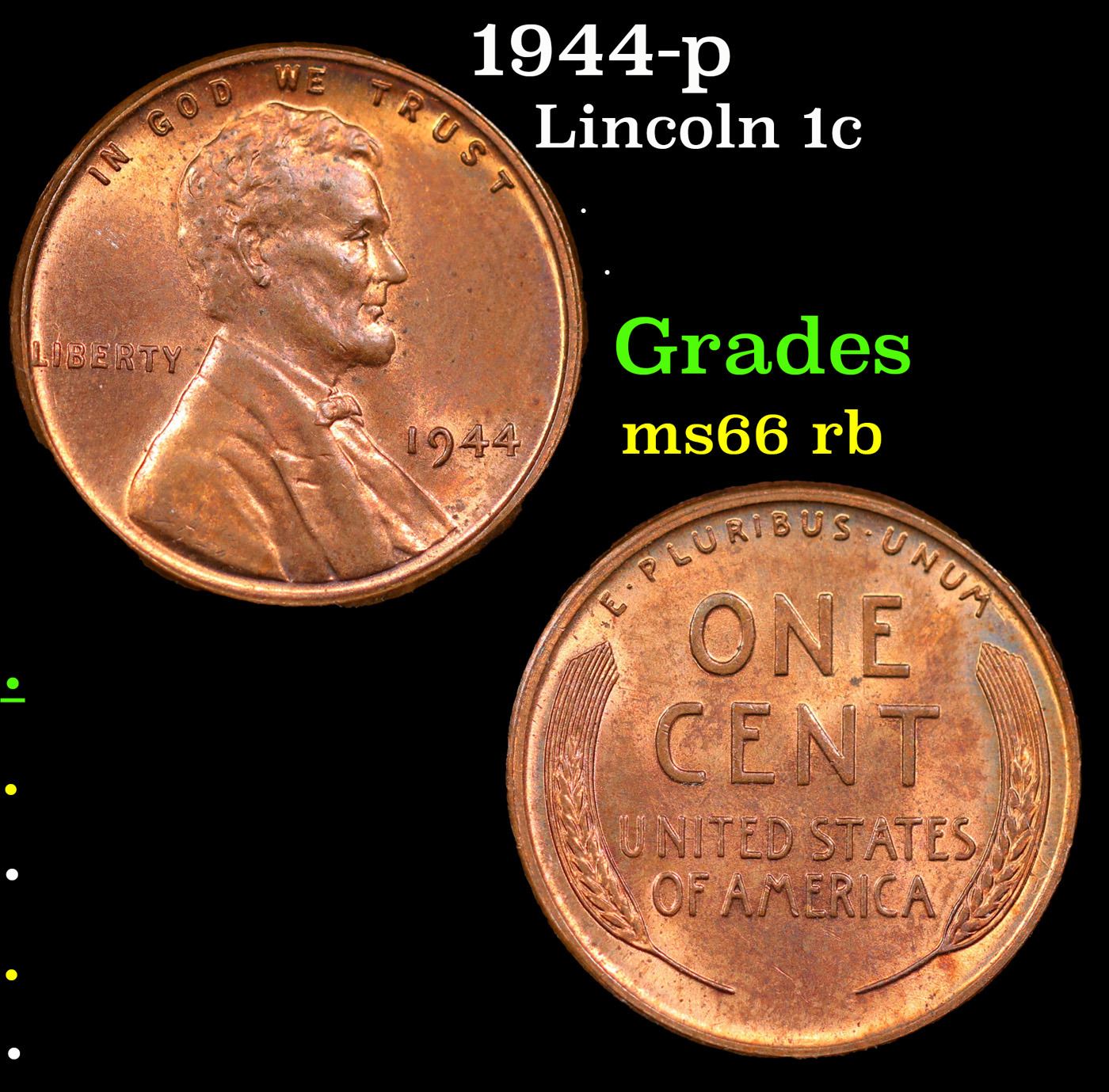 1944-p Lincoln Cent 1c Grades GEM+ Unc RB.