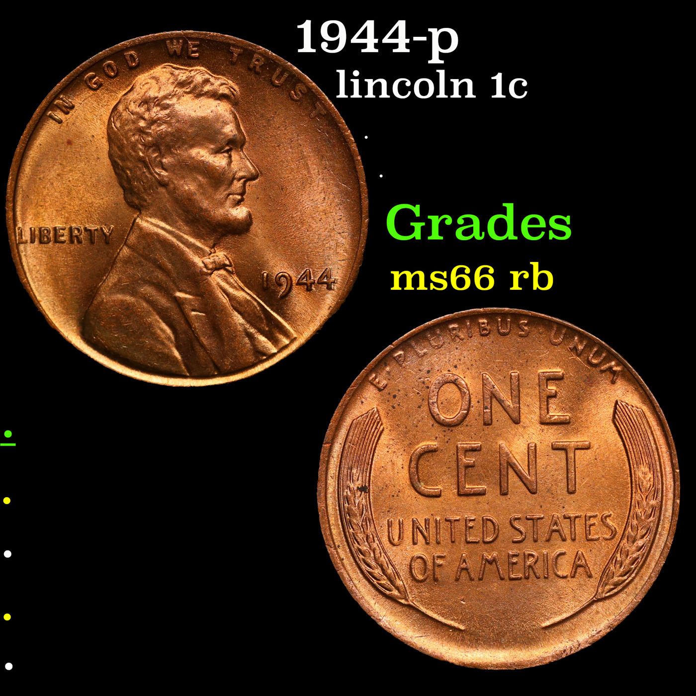 1944-p Lincoln Cent 1c Grades GEM+ Unc RB.