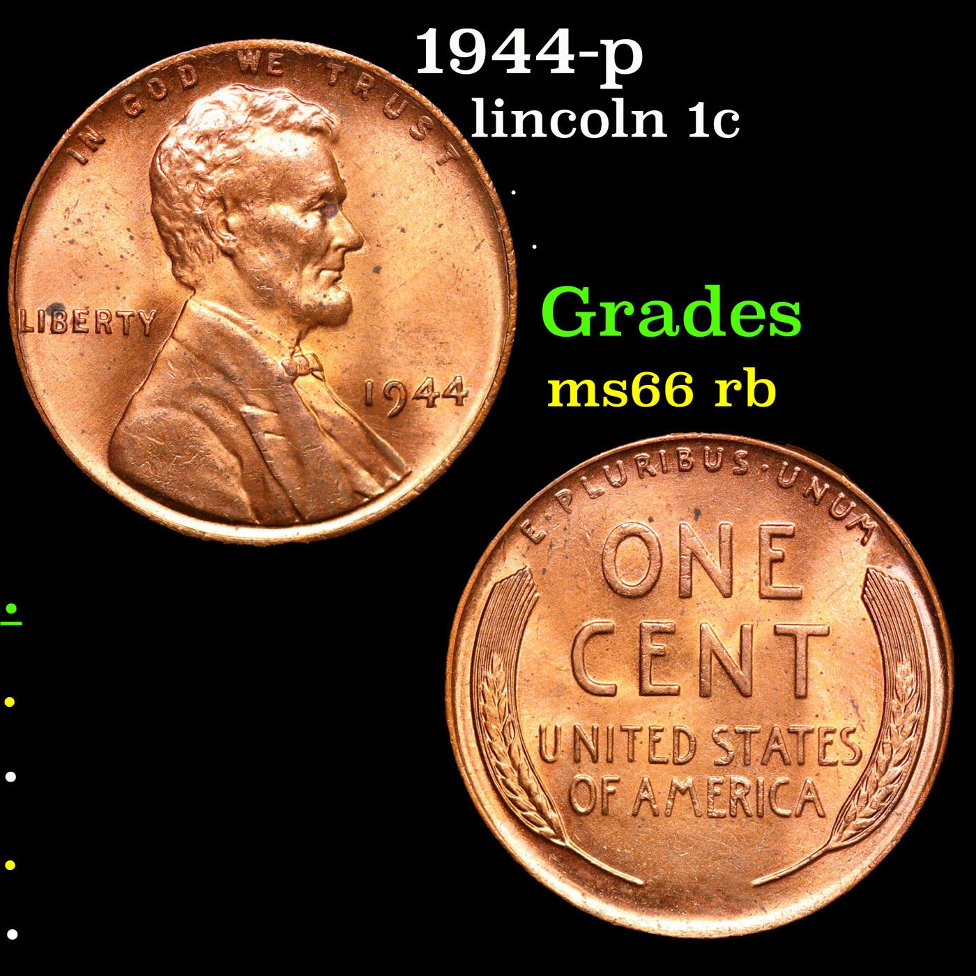 1944-p Lincoln Cent 1c Grades GEM+ Unc RB.