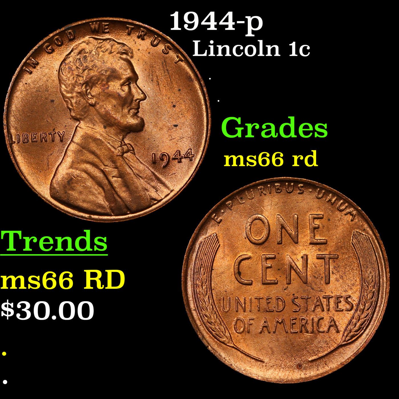 1944-p Lincoln Cent 1c Grades GEM+ Unc RD.