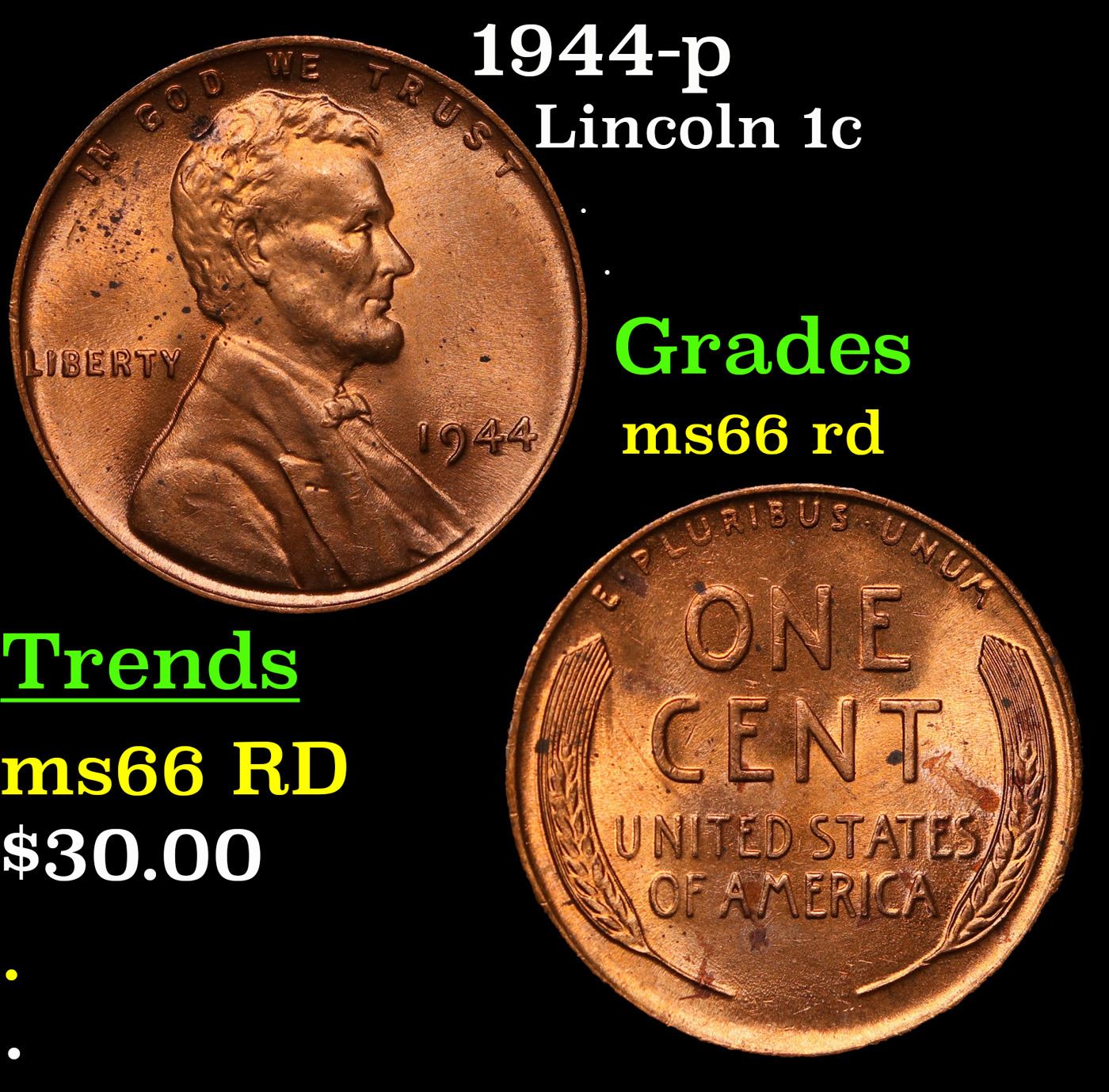 1944-p Lincoln Cent 1c Grades GEM+ Unc RD.