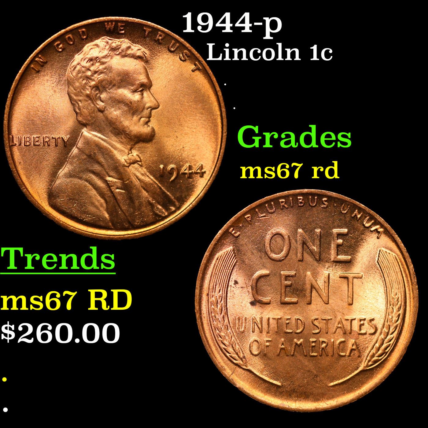1944-p Lincoln Cent 1c Grades GEM++ Unc RD.
