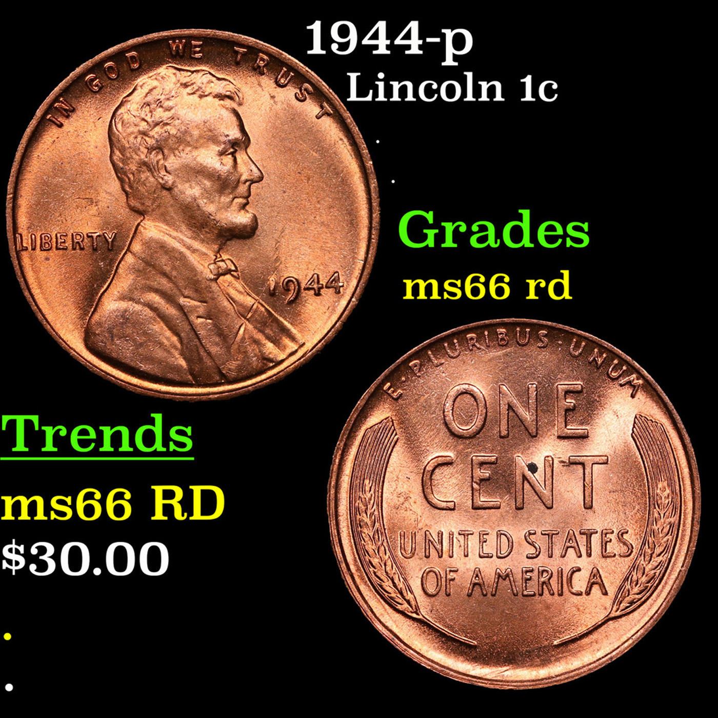 1944-p Lincoln Cent 1c Grades GEM+ Unc RD.