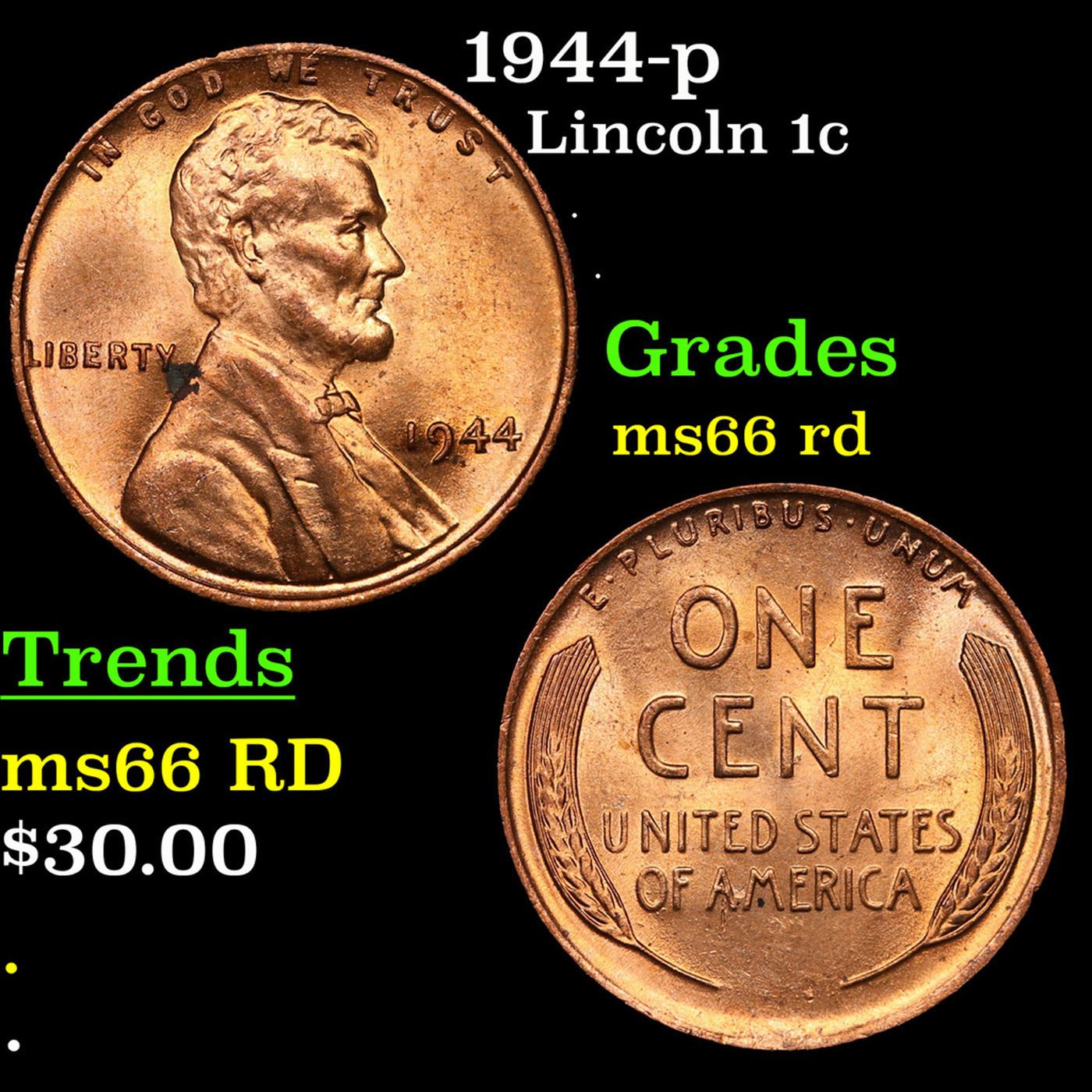1944-p Lincoln Cent 1c Grades GEM+ Unc RD.