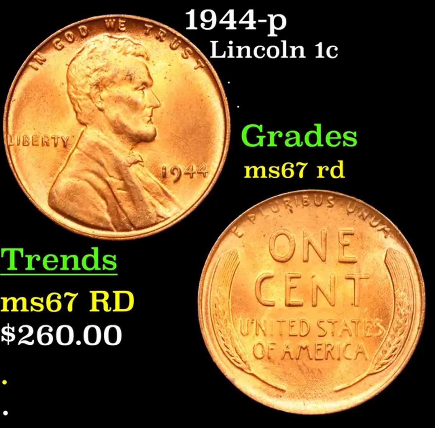 1944-p Lincoln Cent 1c Grades GEM++ Unc RD.