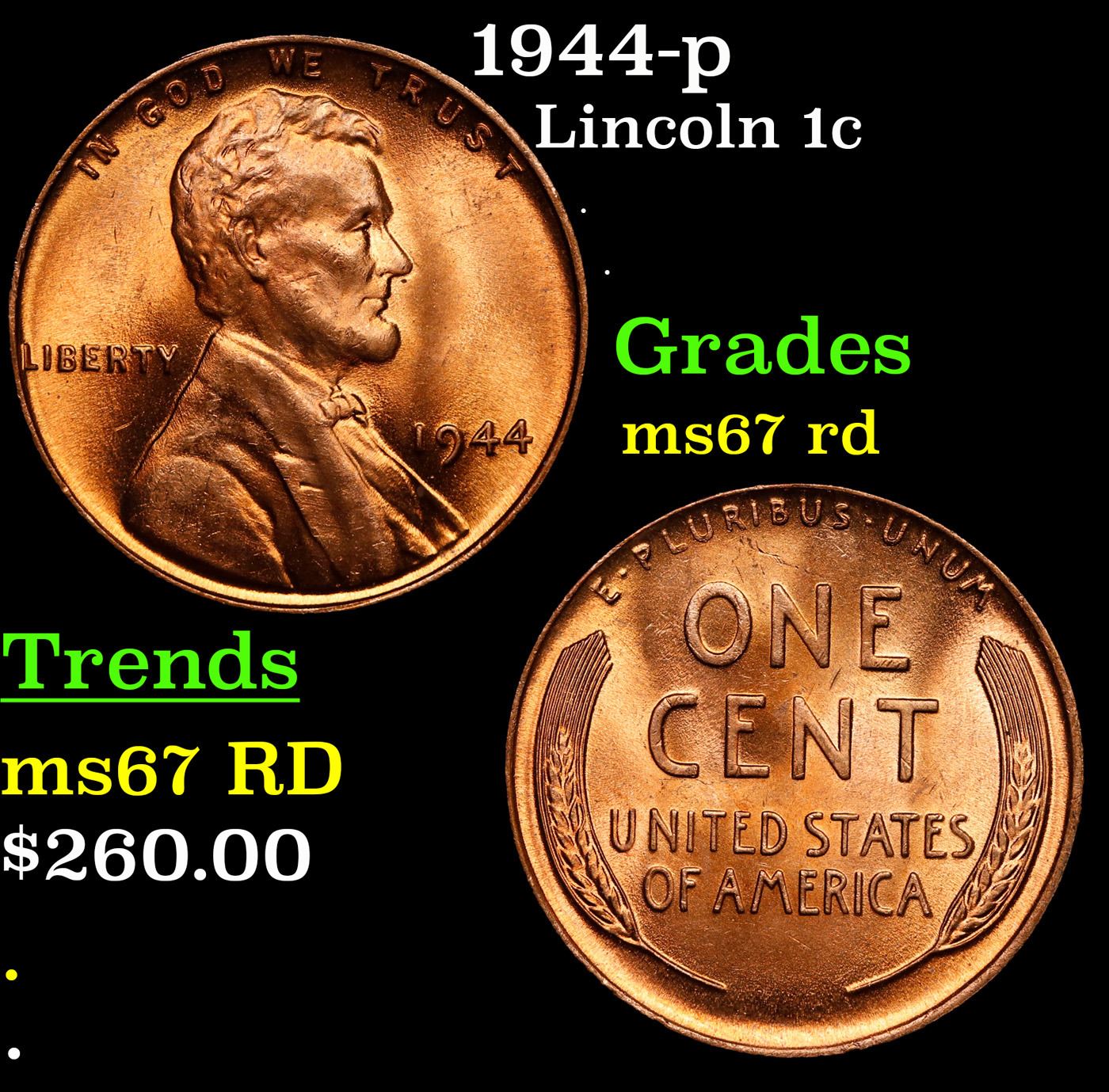 1944-p Lincoln Cent 1c Grades GEM++ Unc RD.