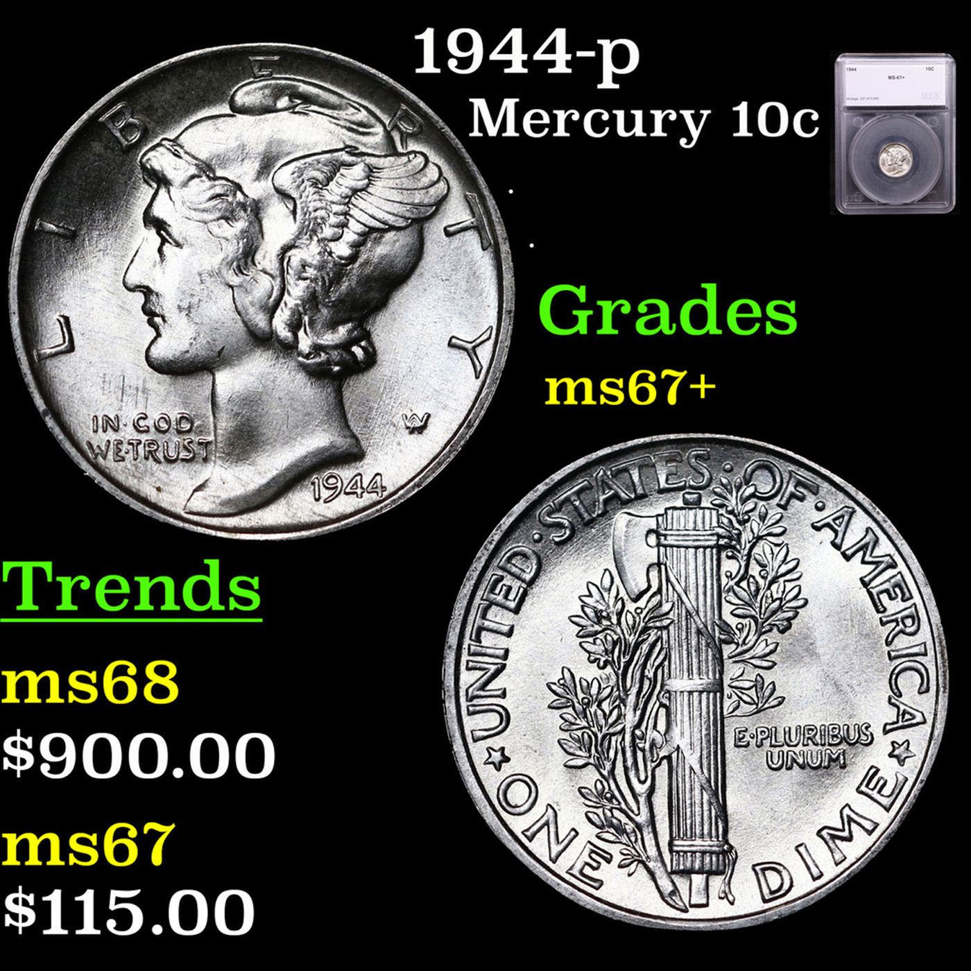 1944-p Mercury Dime 10c Graded ms67+ By SEGS.