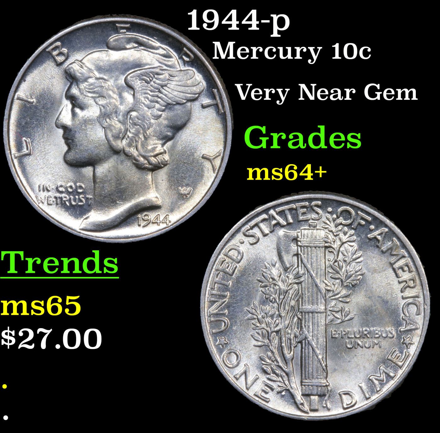 1944-p Mercury Dime 10c Grades Choice+ Unc.