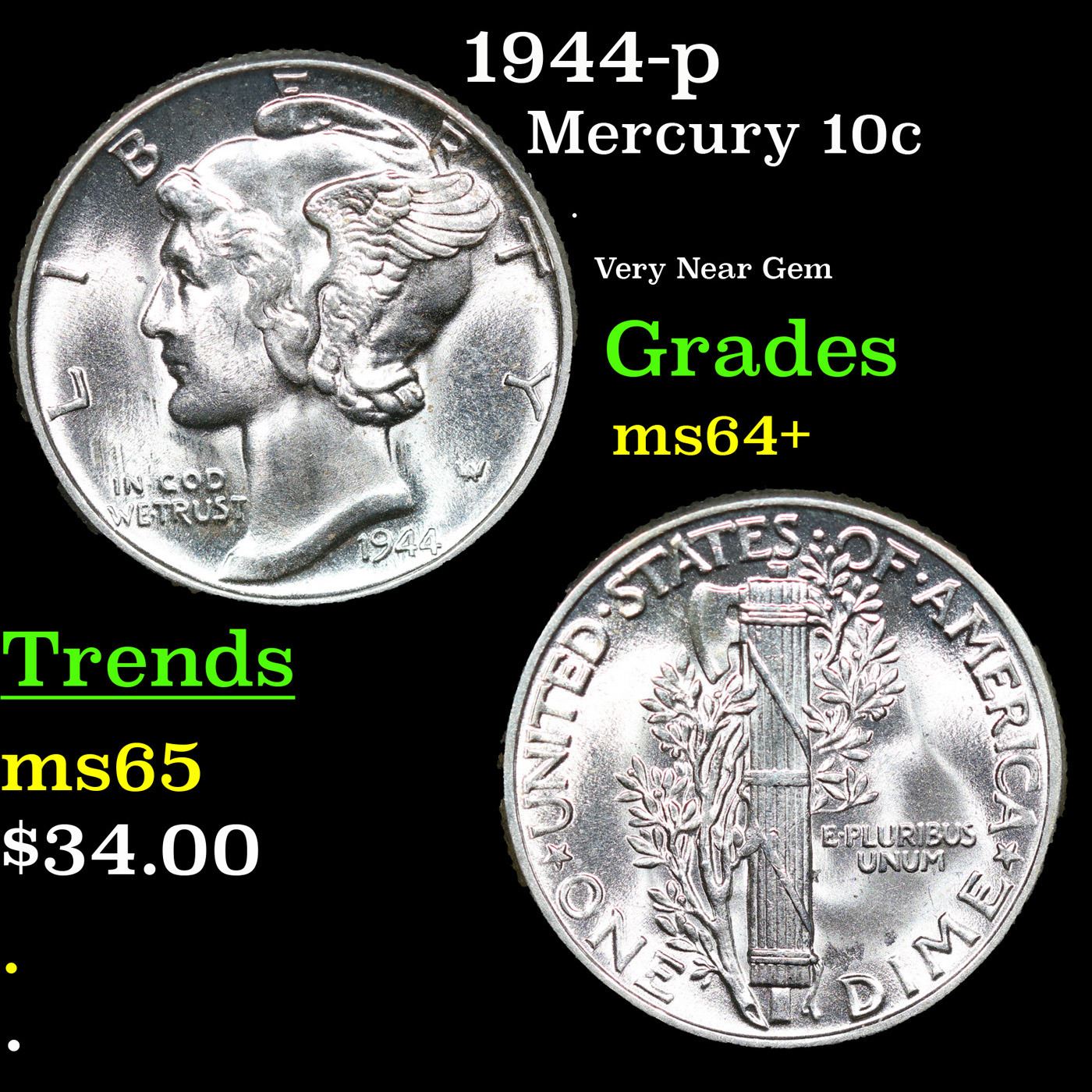 1944-p Mercury Dime 10c Grades Choice+ Unc.