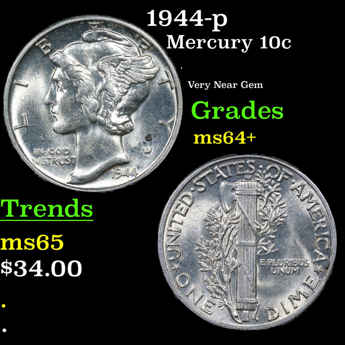 1944-p Mercury Dime 10c Grades Choice+ Unc.