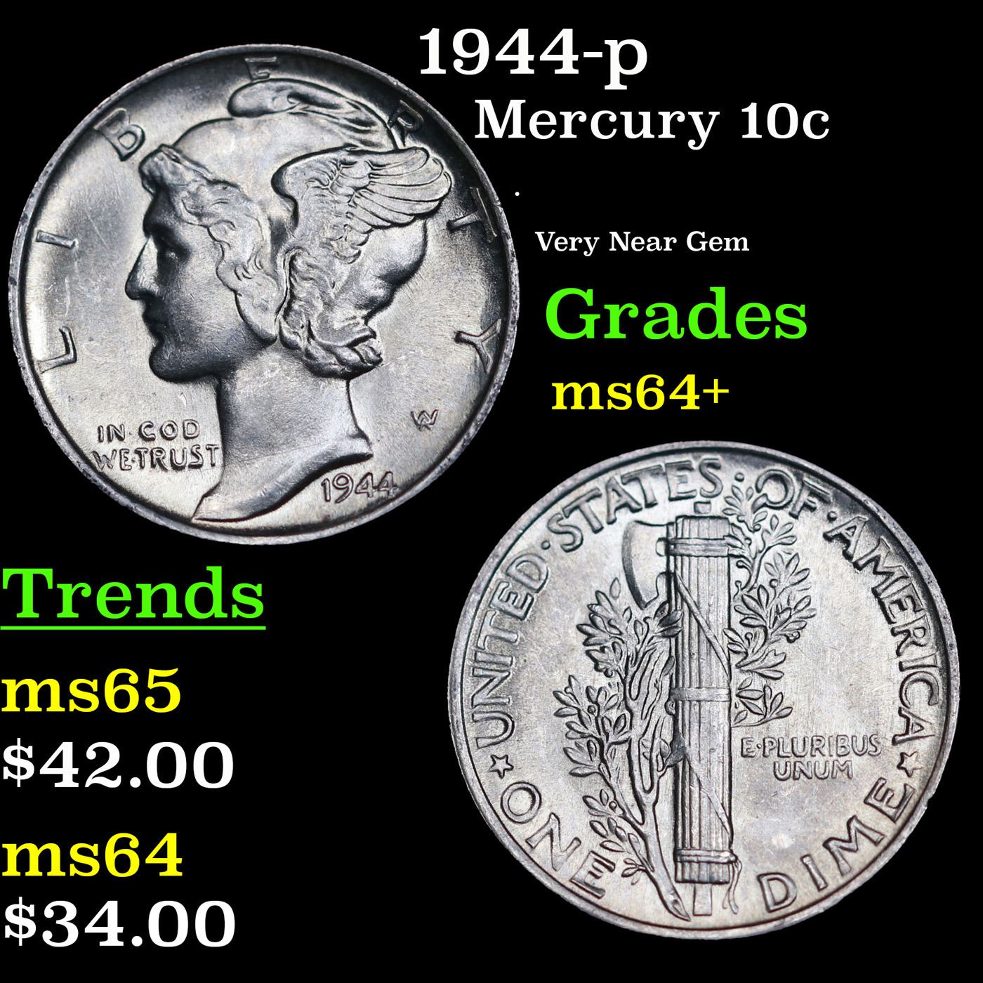 1944-p Mercury Dime 10c Grades Choice+ Unc.
