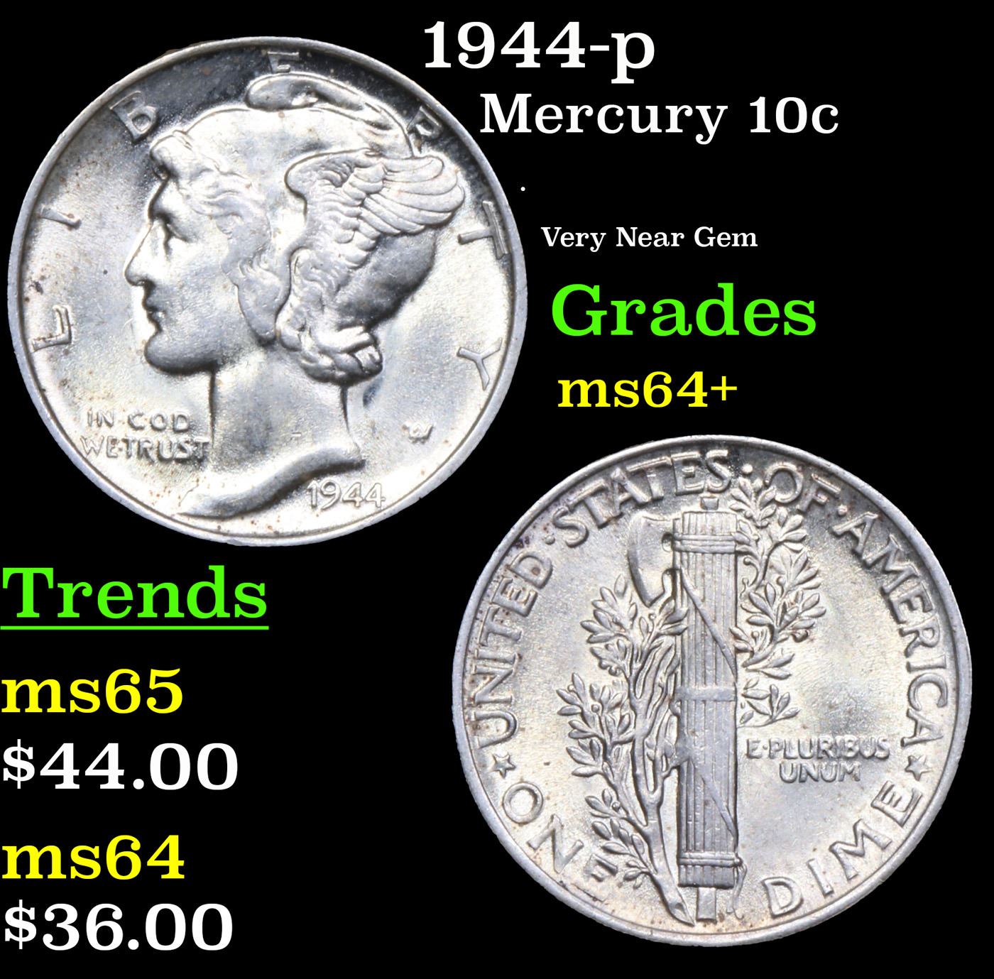 1944-p Mercury Dime 10c Grades Choice+ Unc.