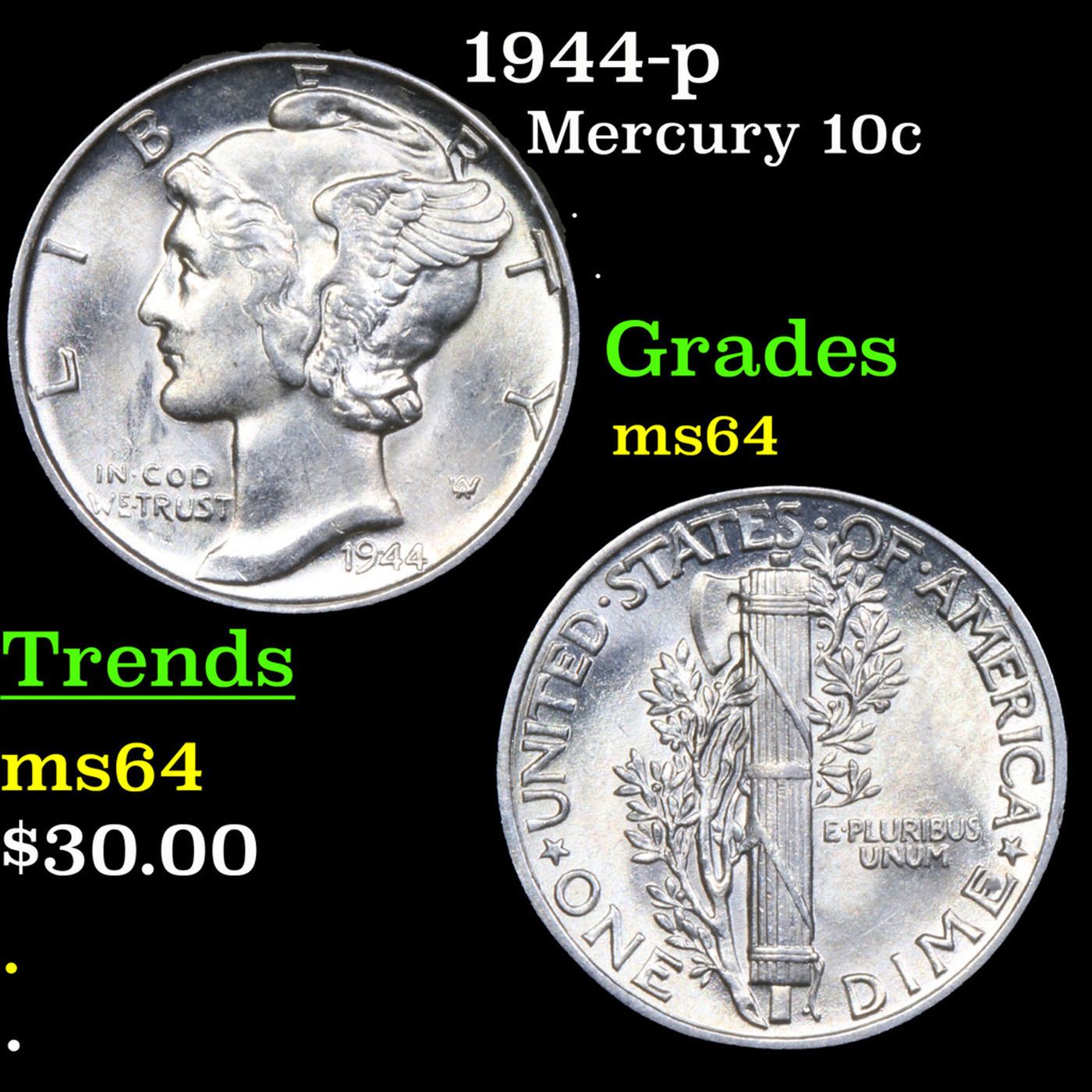 1944-p Mercury Dime 10c Grades Choice Unc.