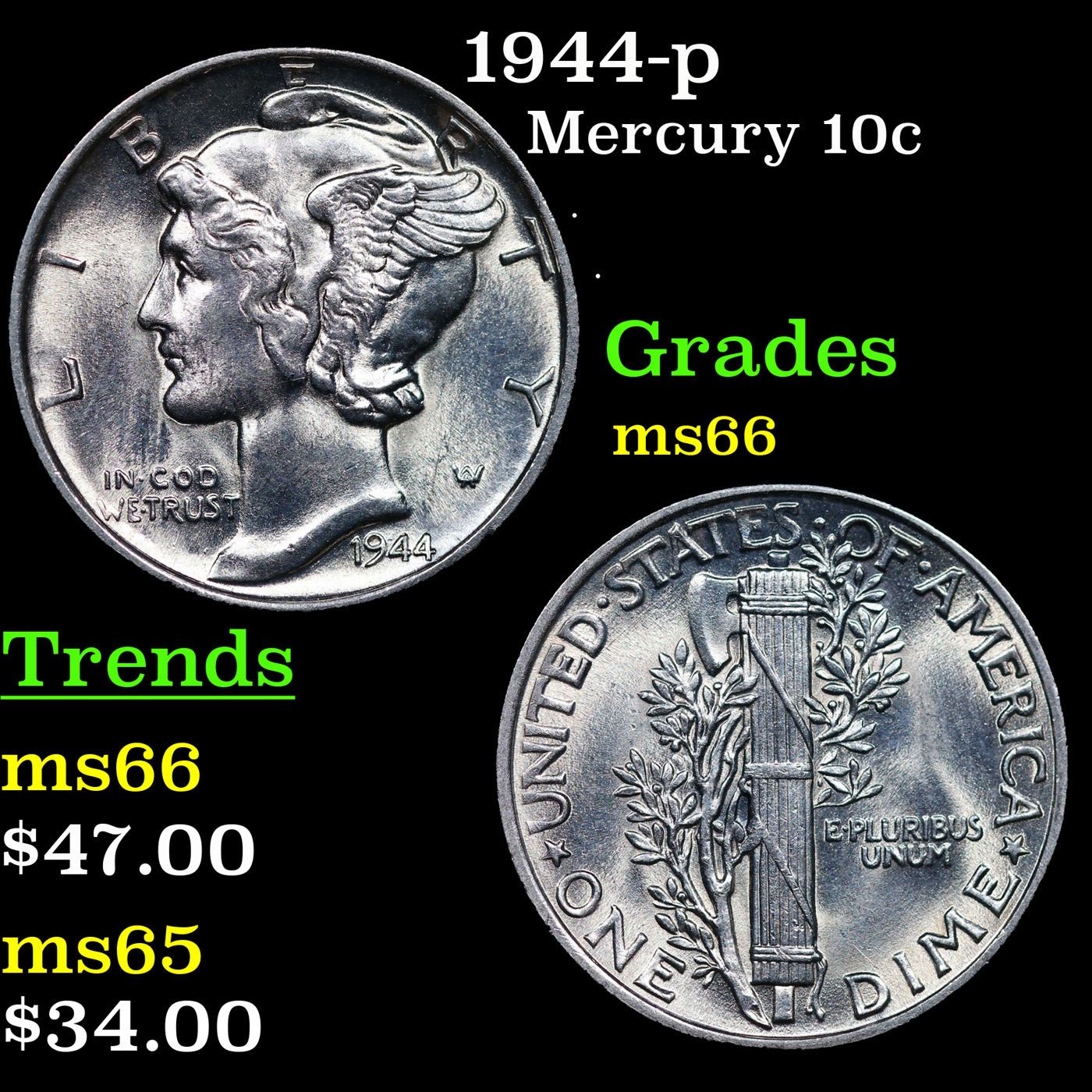 1944-p Mercury Dime 10c Grades GEM+ Unc.