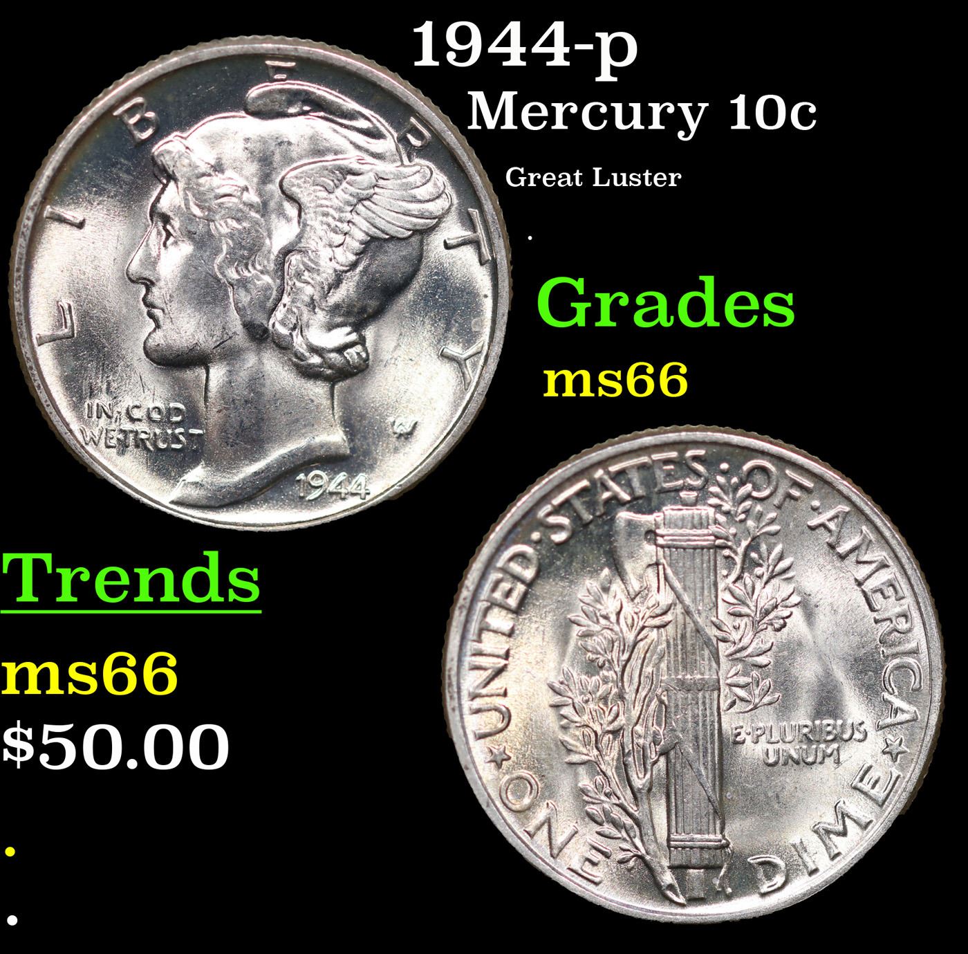1944-p Mercury Dime 10c Grades GEM+ Unc.