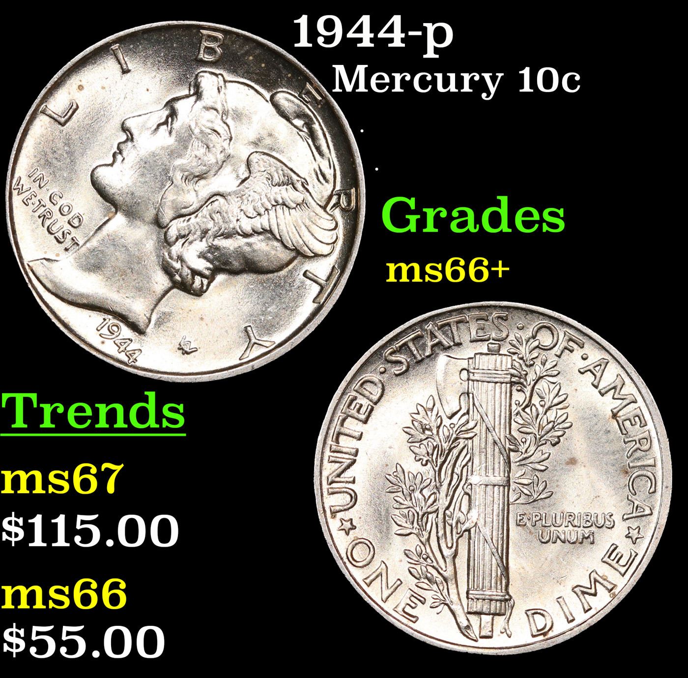 1944-p Mercury Dime 10c Grades GEM++ Unc.
