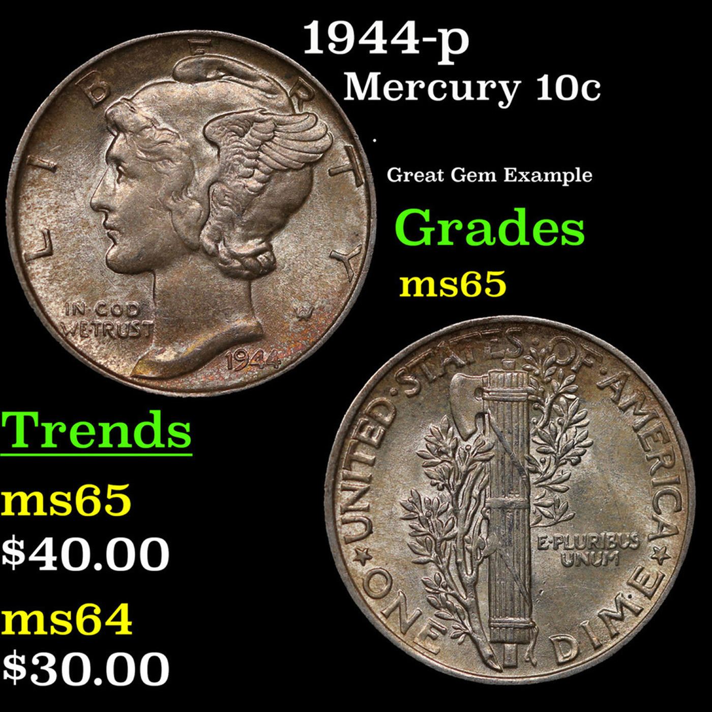1944-p Mercury Dime 10c Grades GEM Unc.