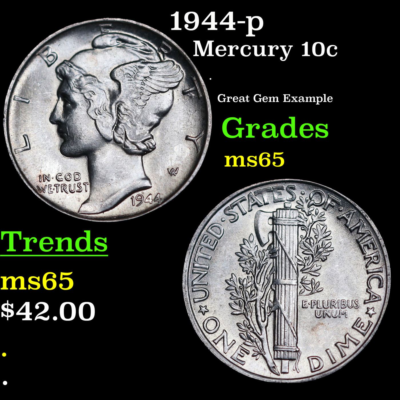 1944-p Mercury Dime 10c Grades GEM Unc.