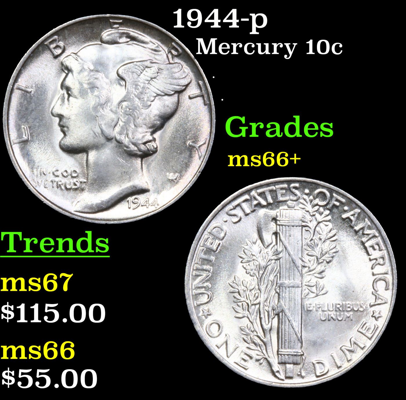 1944-p Mercury Dime 10c Grades GEM++ Unc.