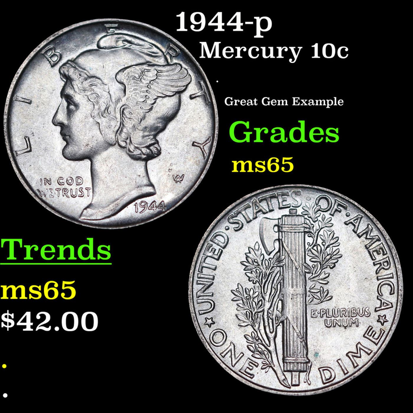 1944-p Mercury Dime 10c Grades GEM Unc.