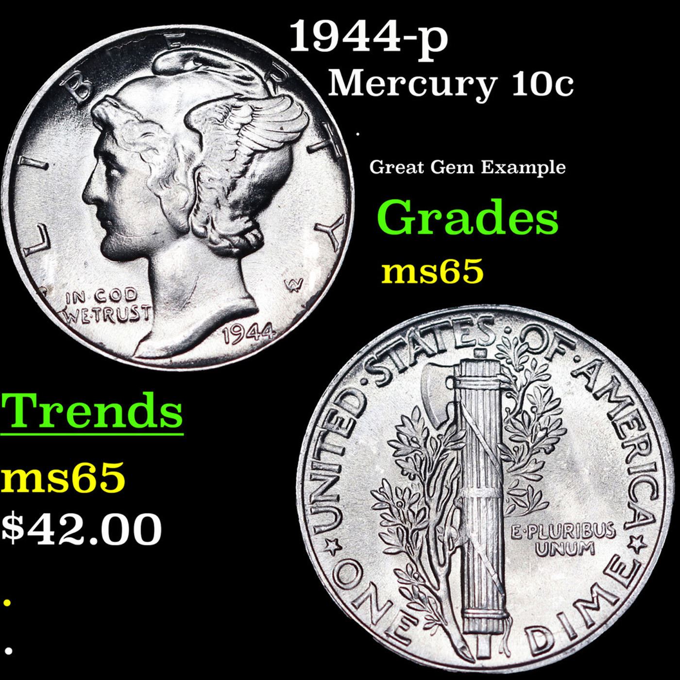 1944-p Mercury Dime 10c Grades GEM Unc.