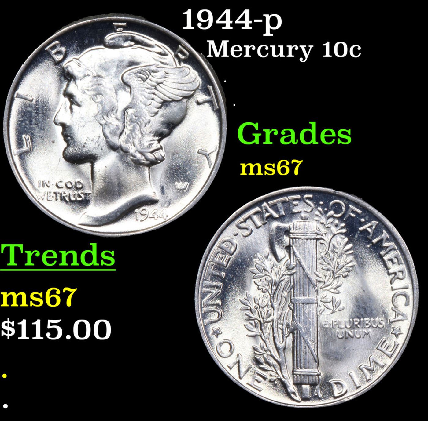 1944-p Mercury Dime 10c Grades GEM++ Unc.