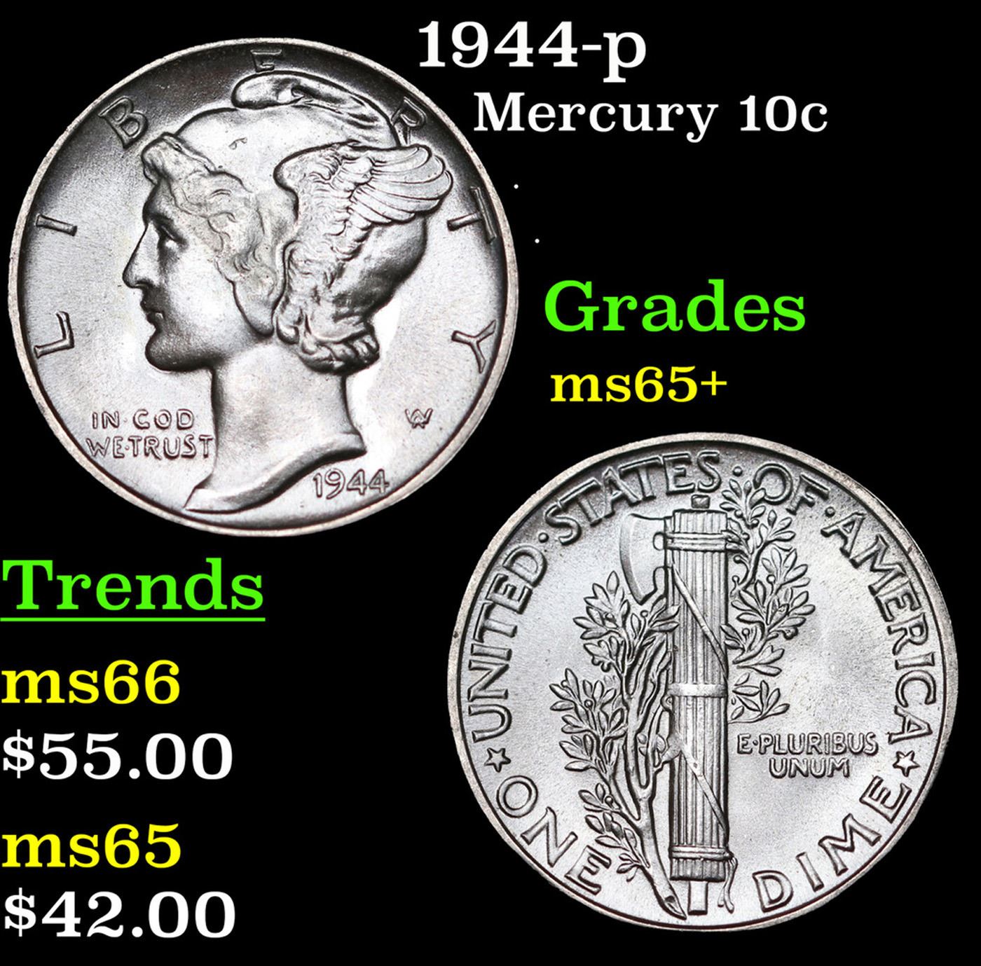 1944-p Mercury Dime 10c Grades GEM+ Unc.