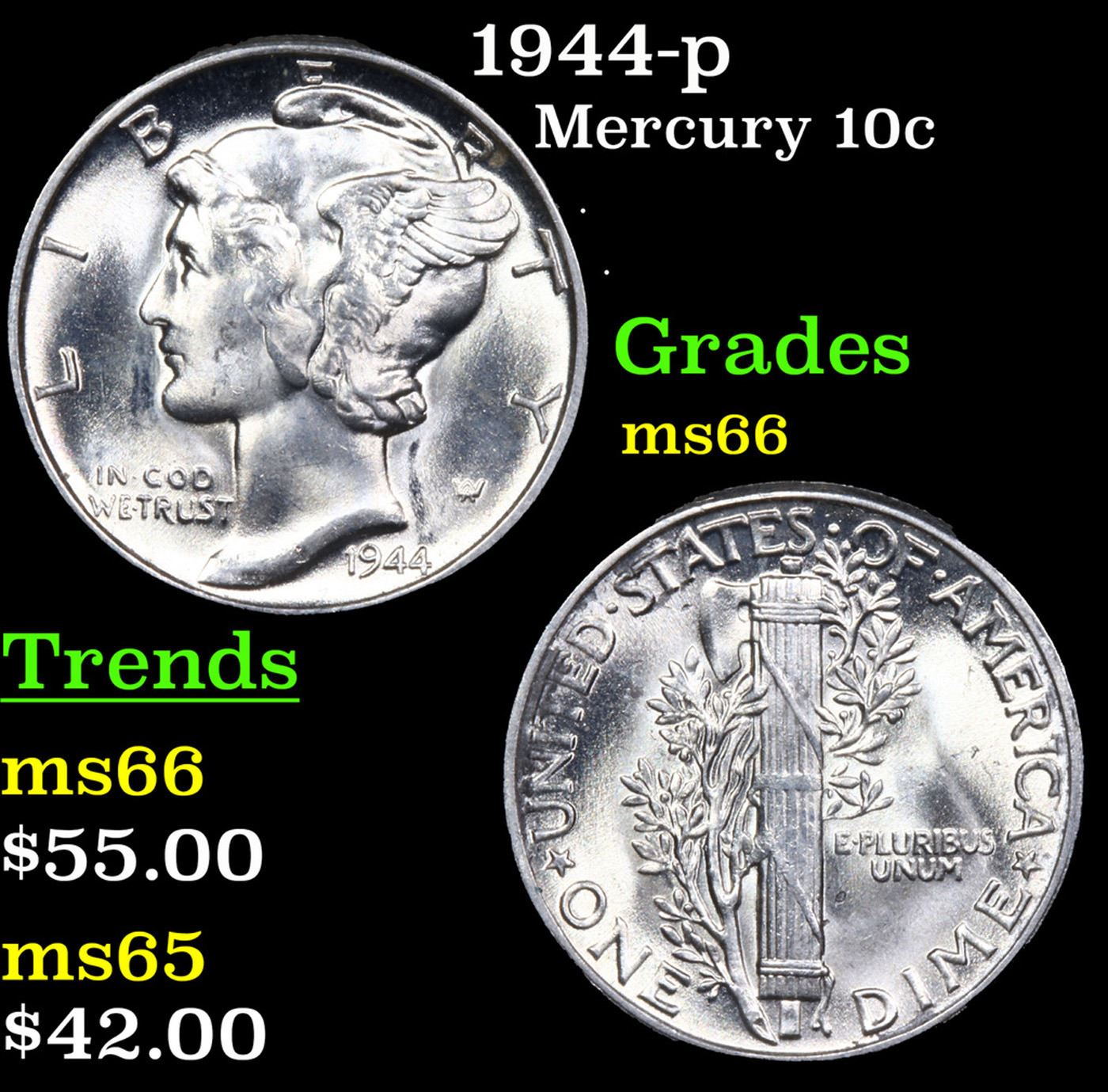 1944-p Mercury Dime 10c Grades GEM+ Unc.