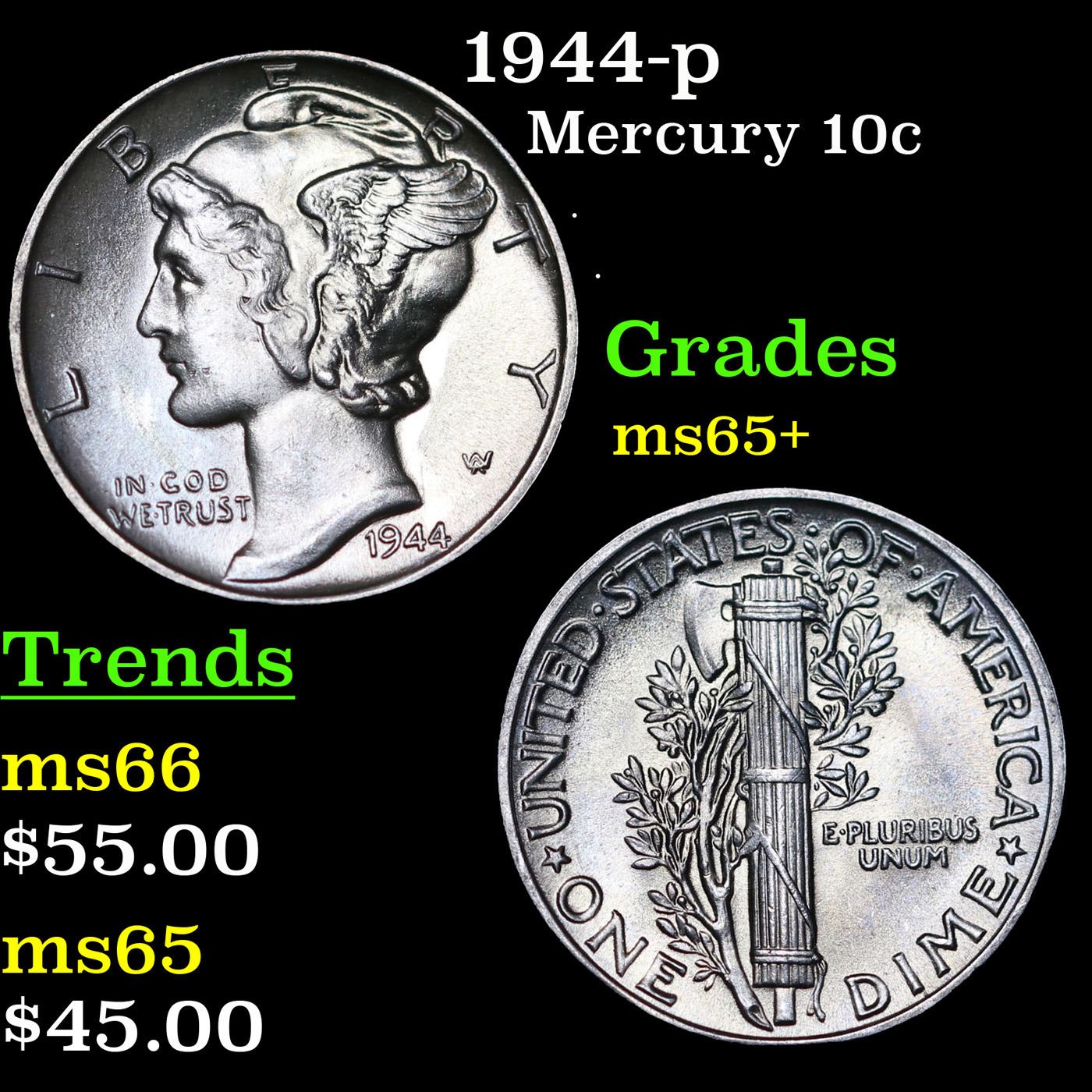 1944-p Mercury Dime 10c Grades GEM+ Unc.