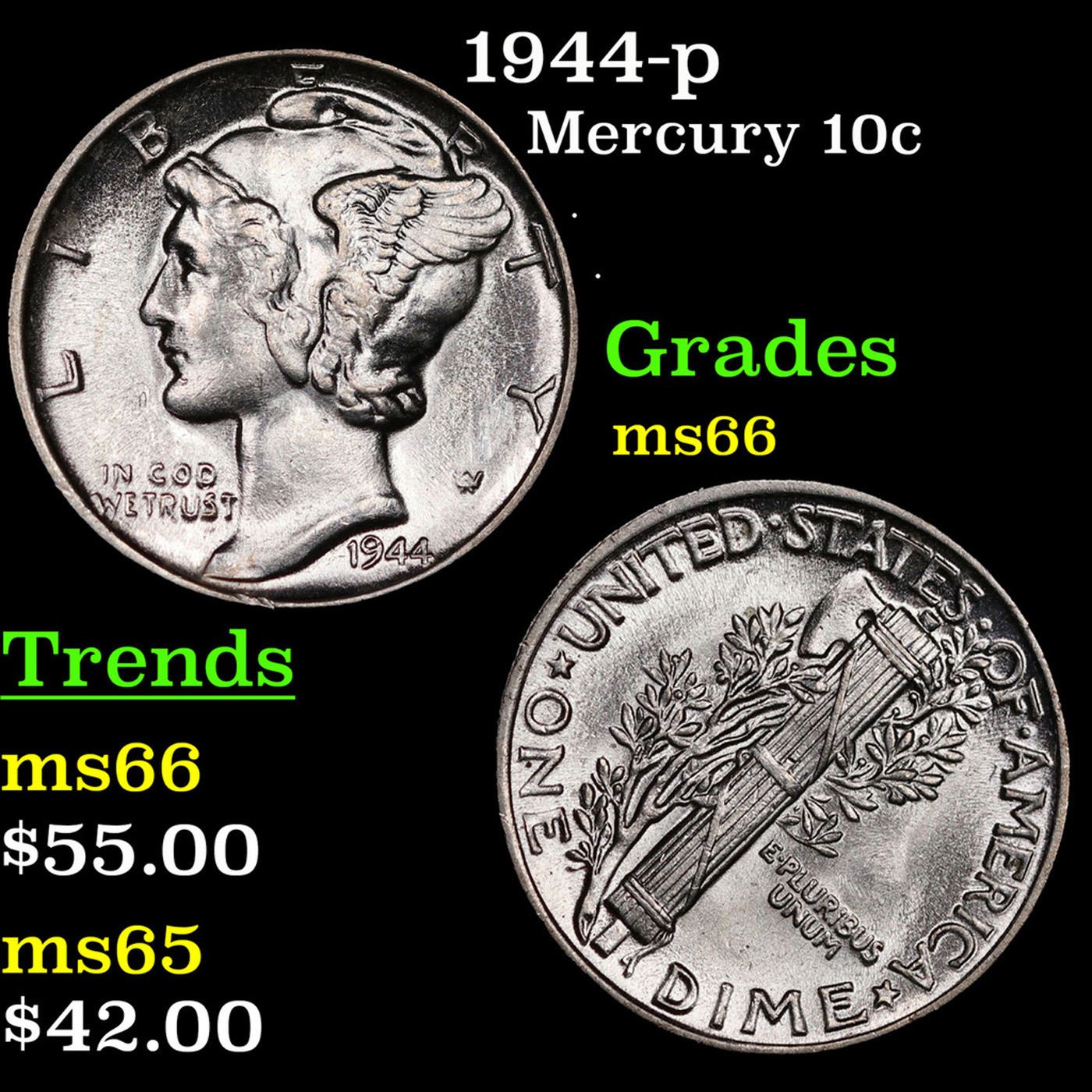 1944-p Mercury Dime 10c Grades GEM+ Unc.