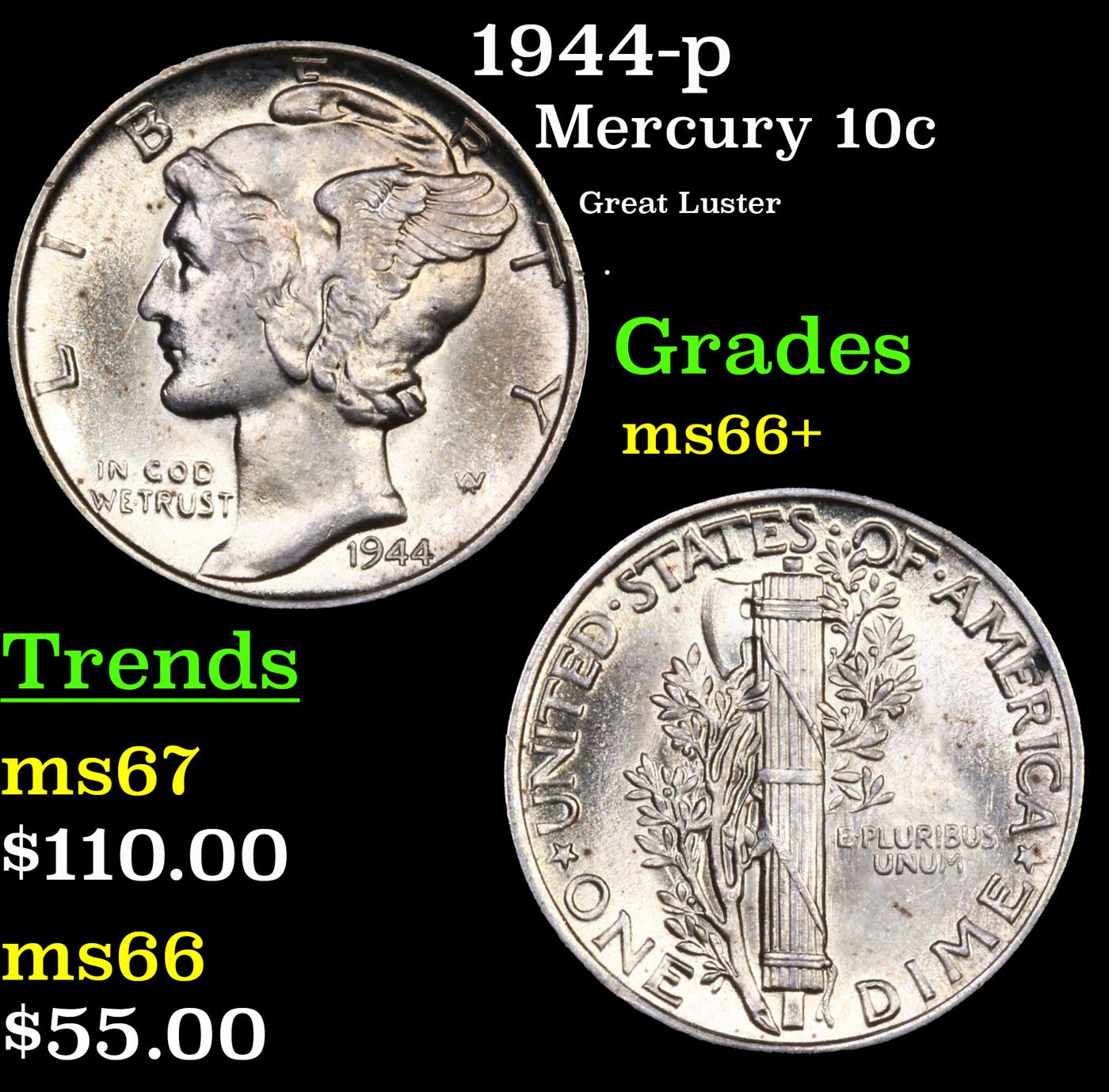 1944-p Mercury Dime 10c Grades GEM++ Unc.