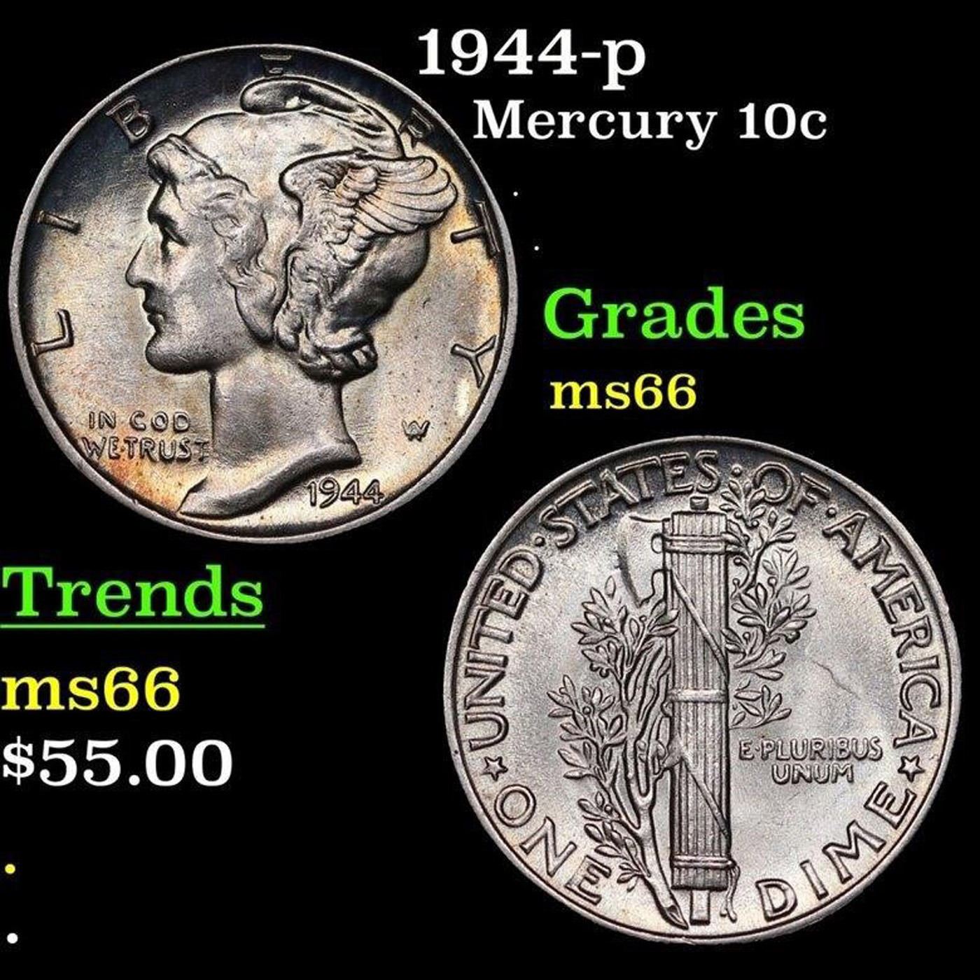 1944-p Mercury Dime 10c Grades GEM+ Unc.
