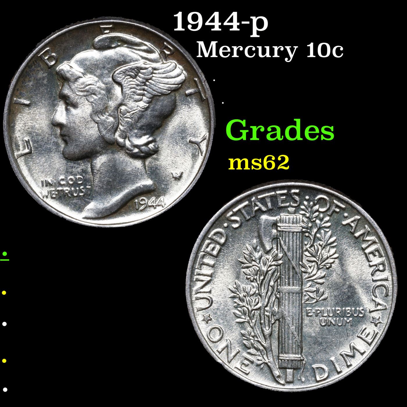 1944-p Mercury Dime 10c Grades Select Unc