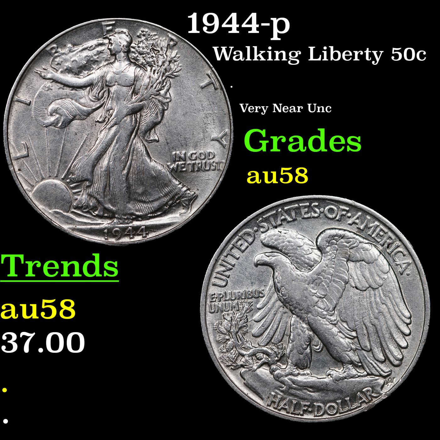 1944-p Walking Liberty Half Dollar 50c Grades Choice AU/BU Slider.