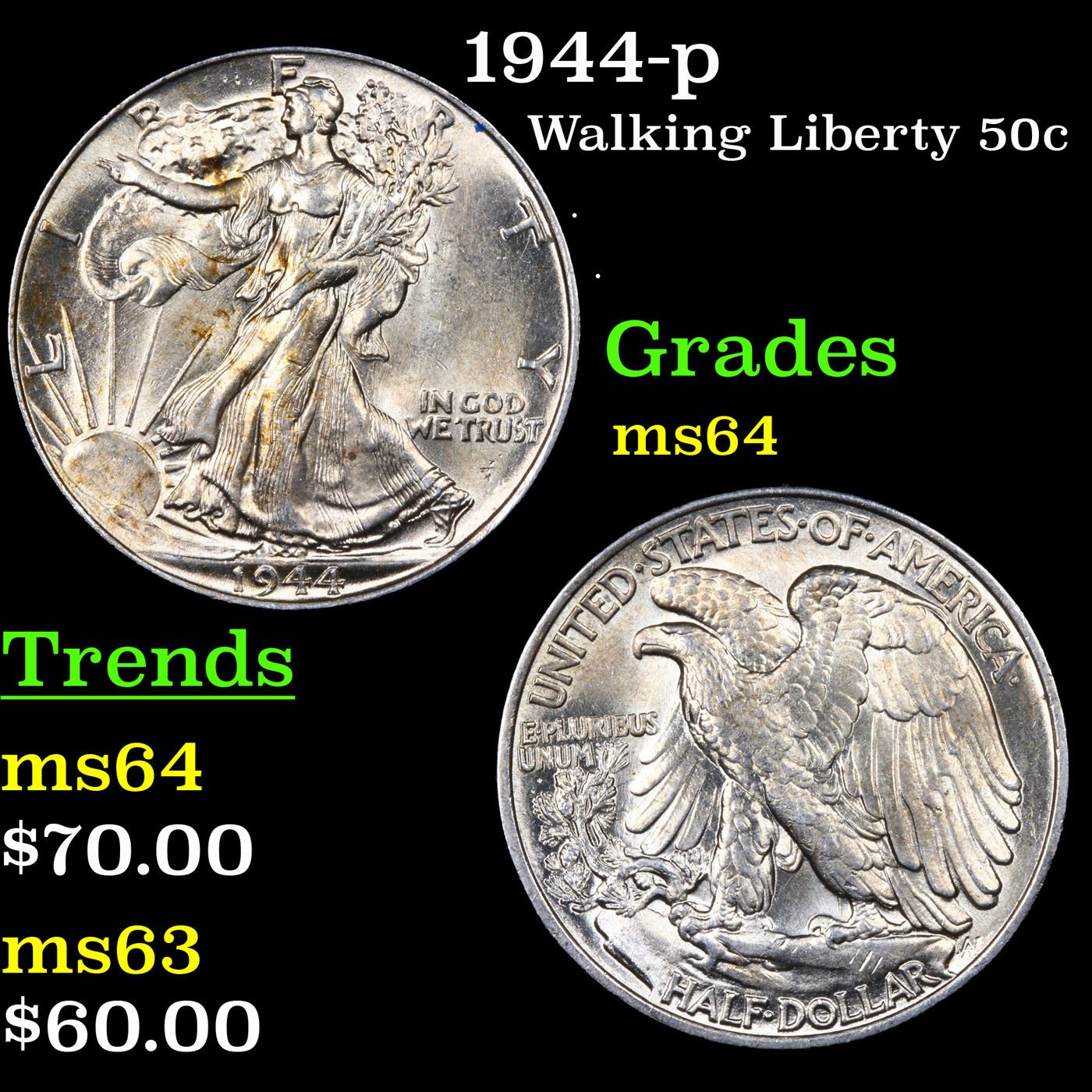 1944-p Walking Liberty Half Dollar 50c Grades Choice Unc.