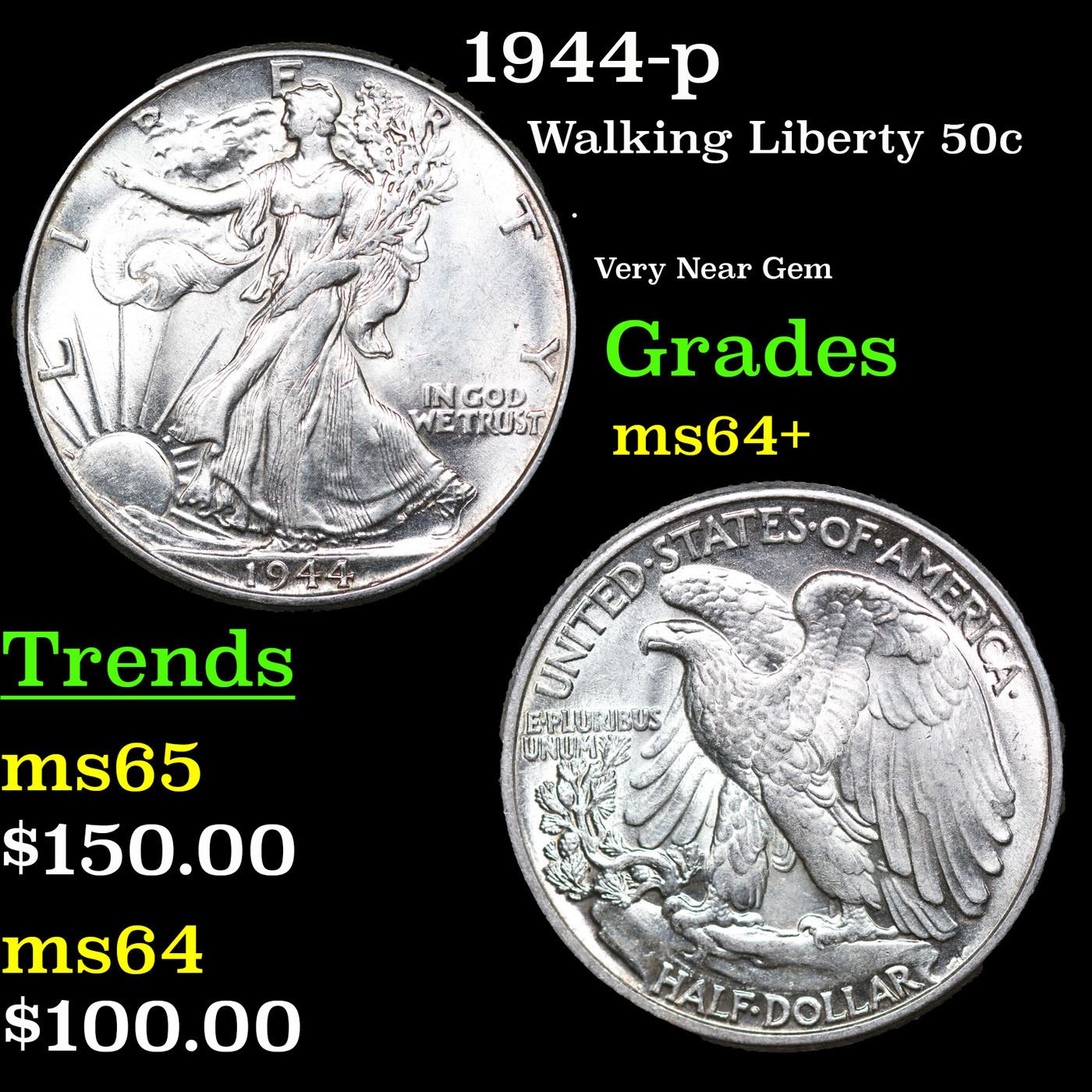 1944-p Walking Liberty Half Dollar 50c Grades Choice+ Unc.