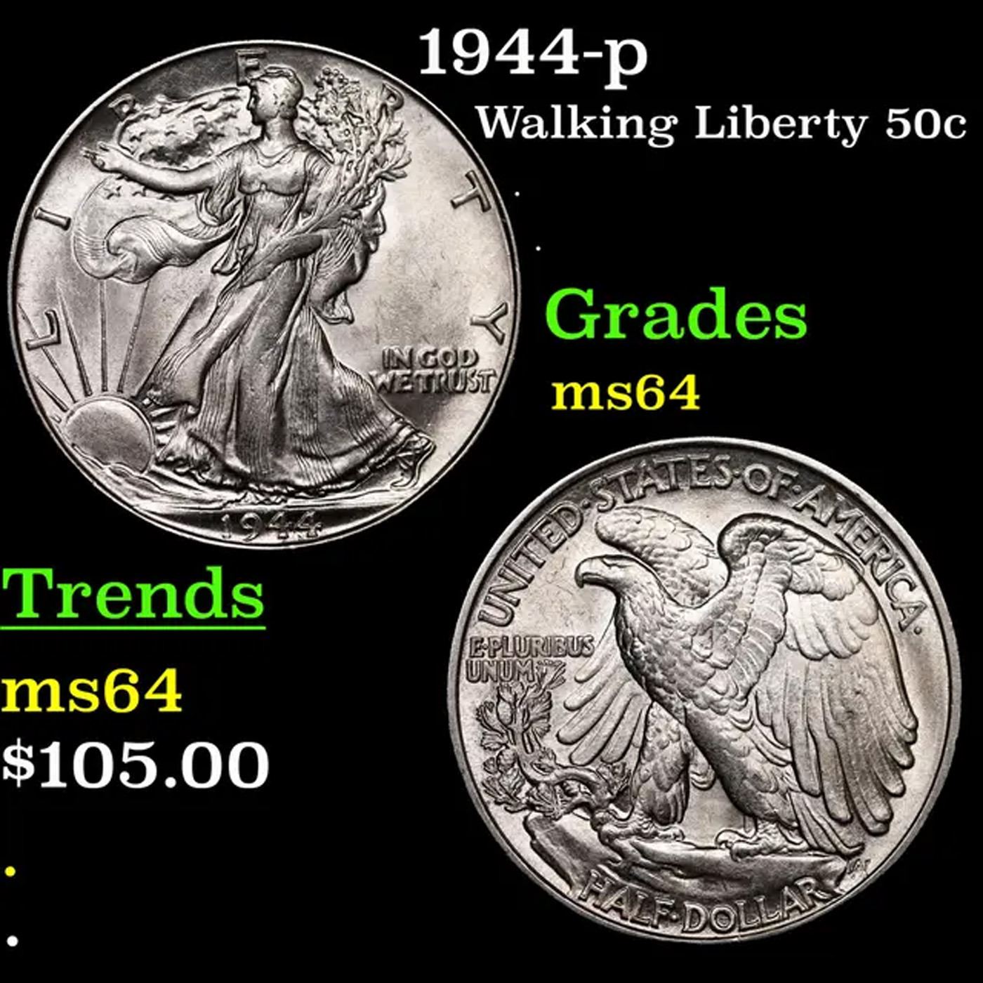 1944-p Walking Liberty Half Dollar 50c Grades Choice Unc.