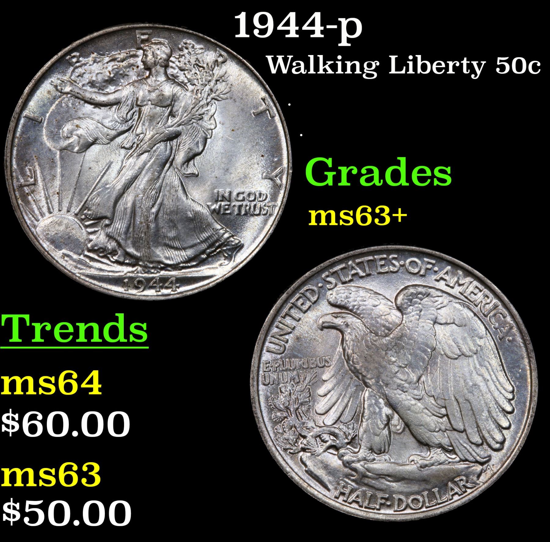 1944-p Walking Liberty Half Dollar 50c Grades Select+ Unc.