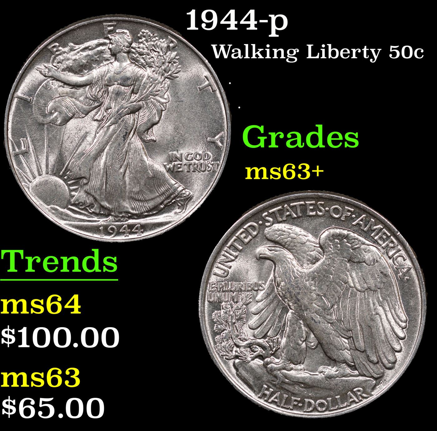 1944-p Walking Liberty Half Dollar 50c Grades Select+ Unc.