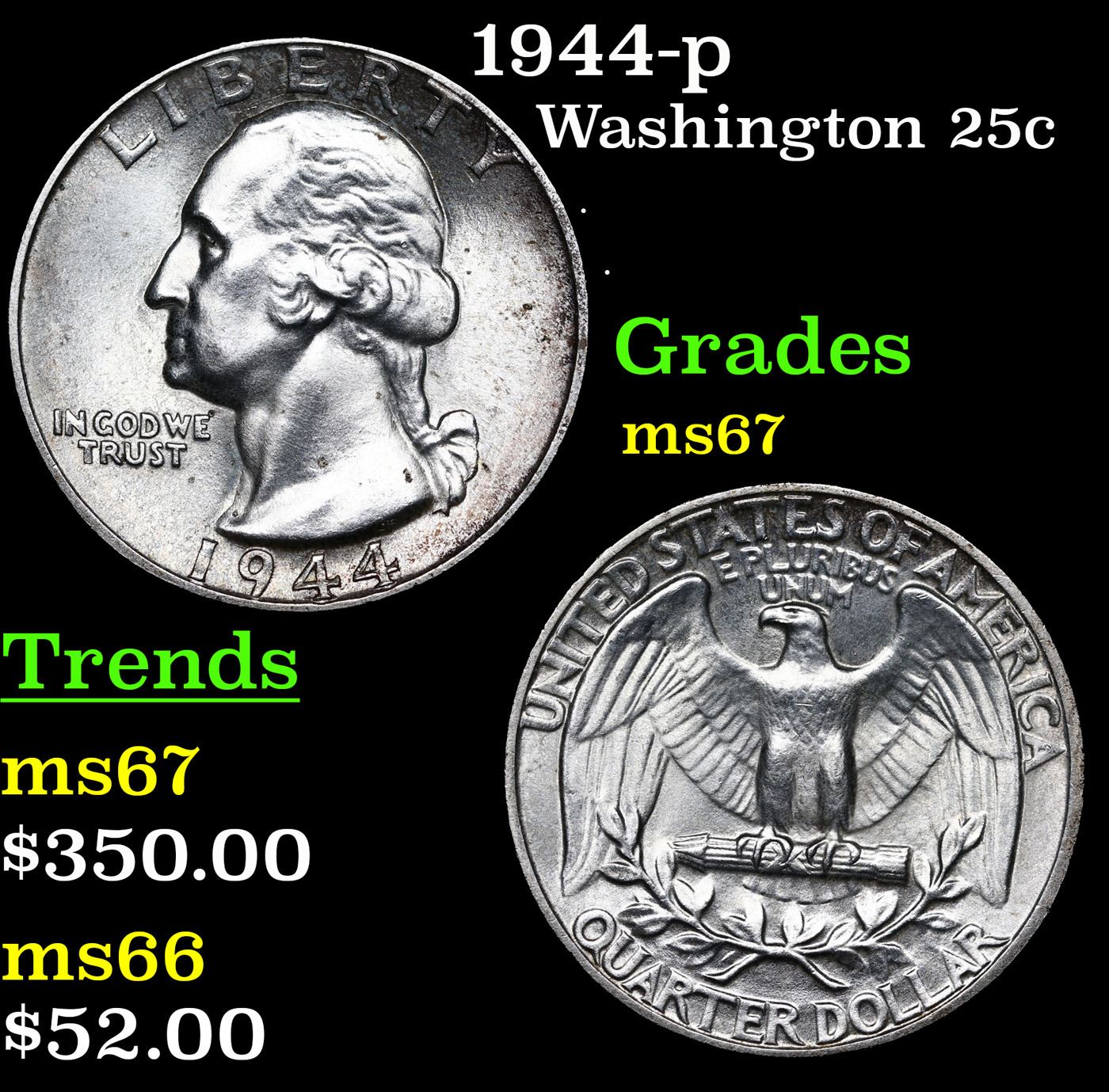 1944-p Washington Quarter 25c Grades GEM++ Unc.