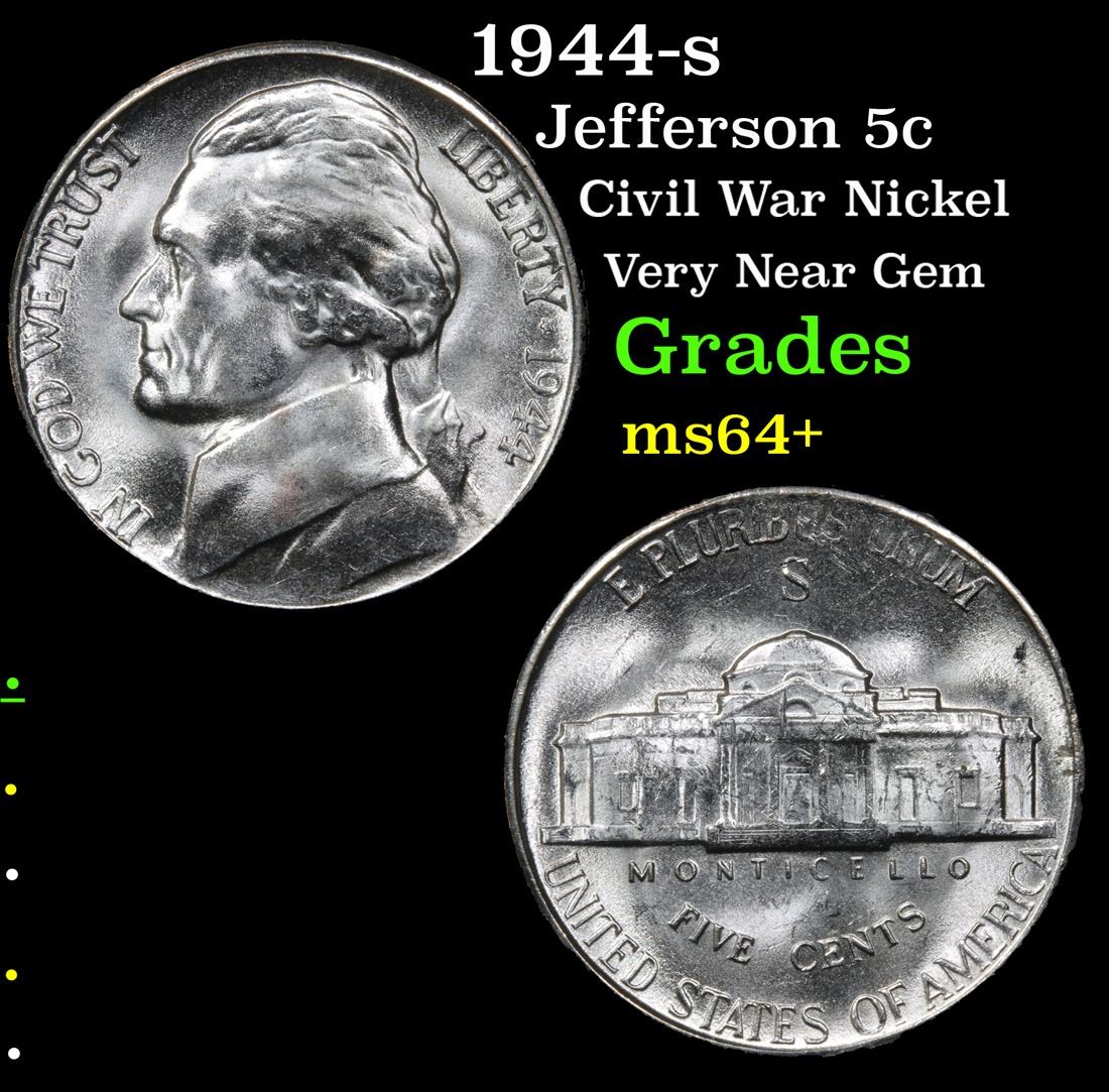1944-s Civil War Nickel Very Near Gem Jefferson Nickel 5c Grades Choice+ Unc.