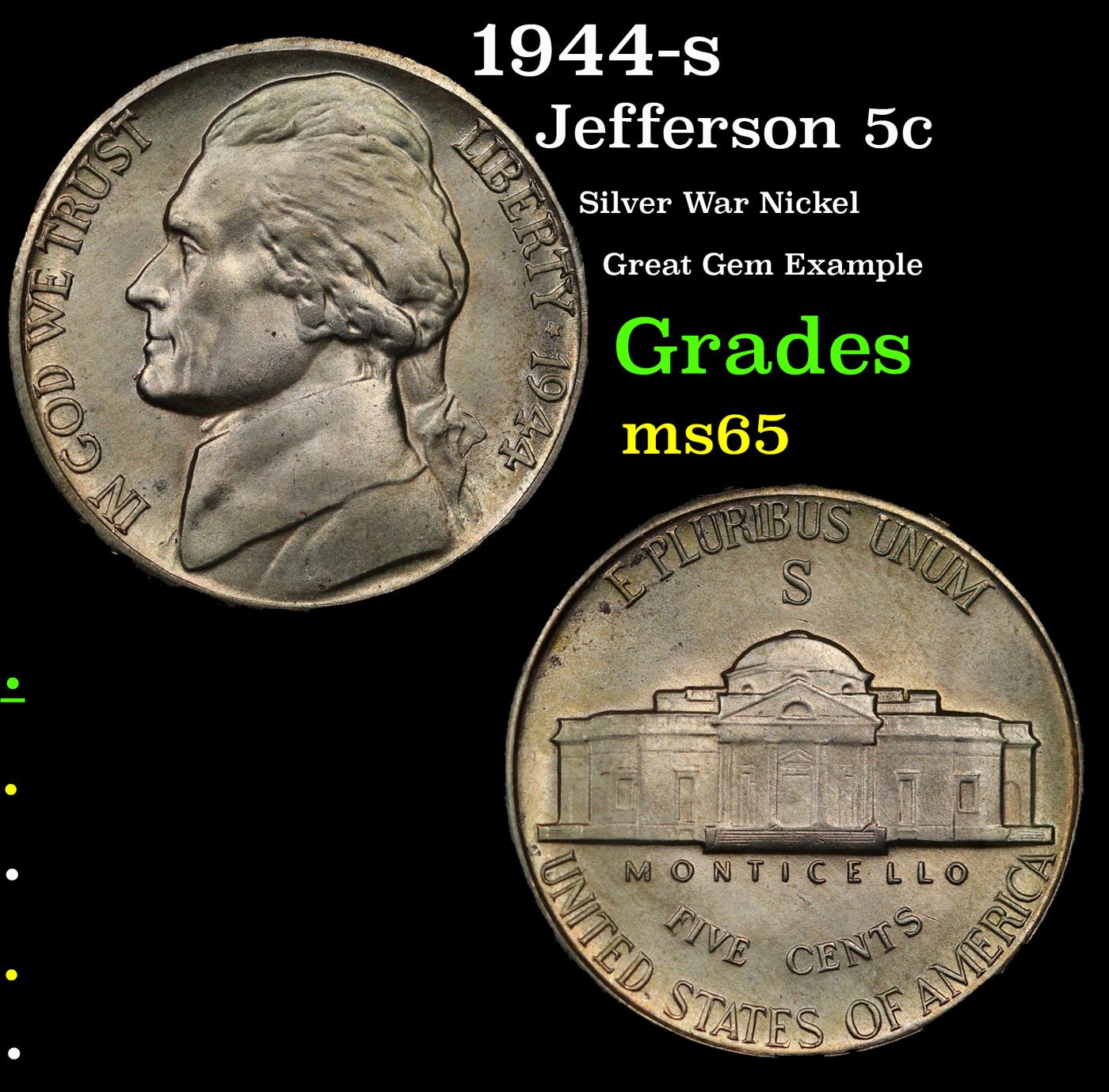 1944-s Jefferson Nickel 5c Grades GEM Unc.
